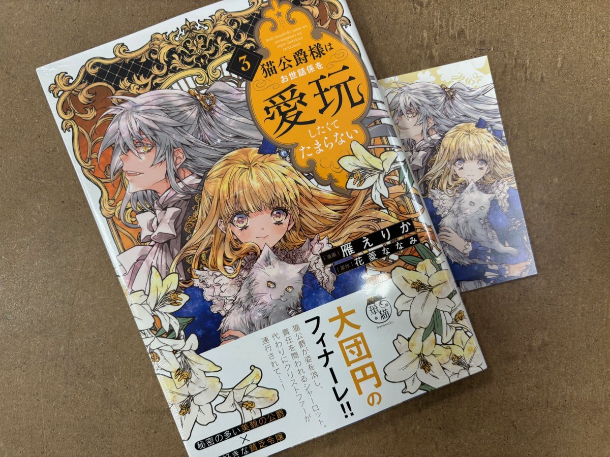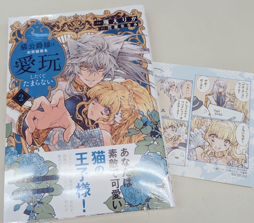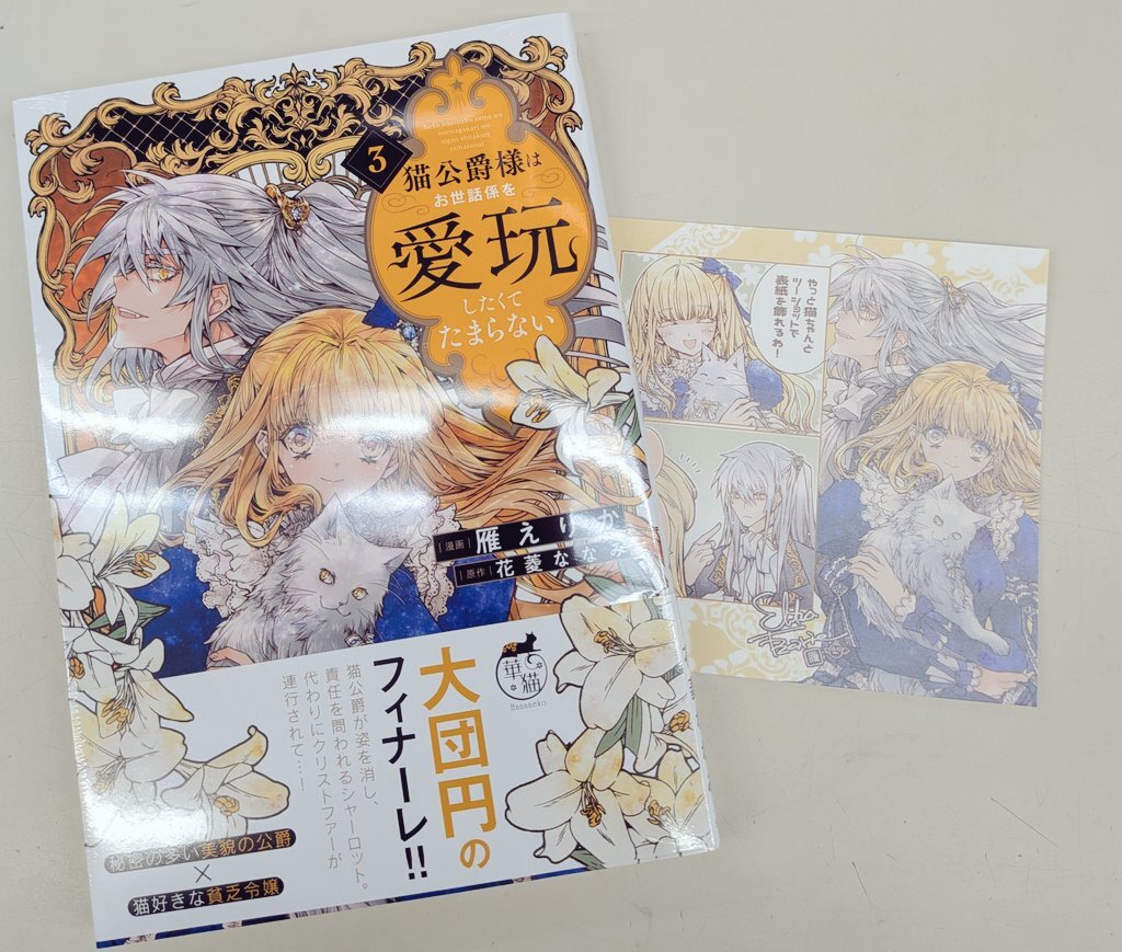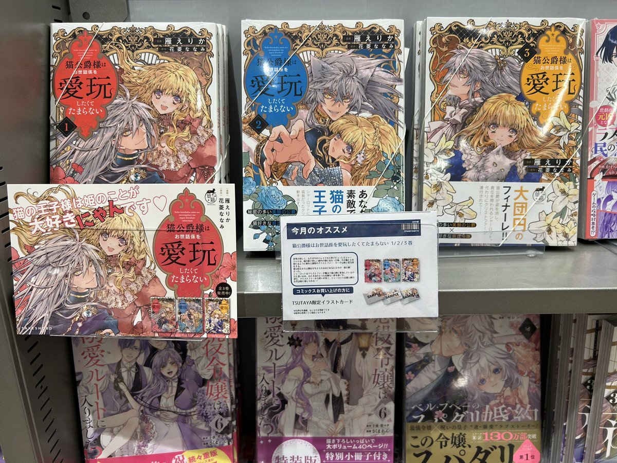 【コミック情報📚】 ただいま「#猫公爵様はお世話係を愛玩したくてたまらない 1・2・3巻」を1冊お買い上げにつき1枚、イラストカードを配布中です‼️ ※特典は無くなり次第終了です。 #TSUTAYA #印西市 #超コミツタ #BIGHOP pic.x.com/w5wccJysme x.com/shop_tsutaya/s…