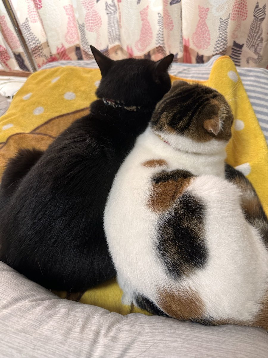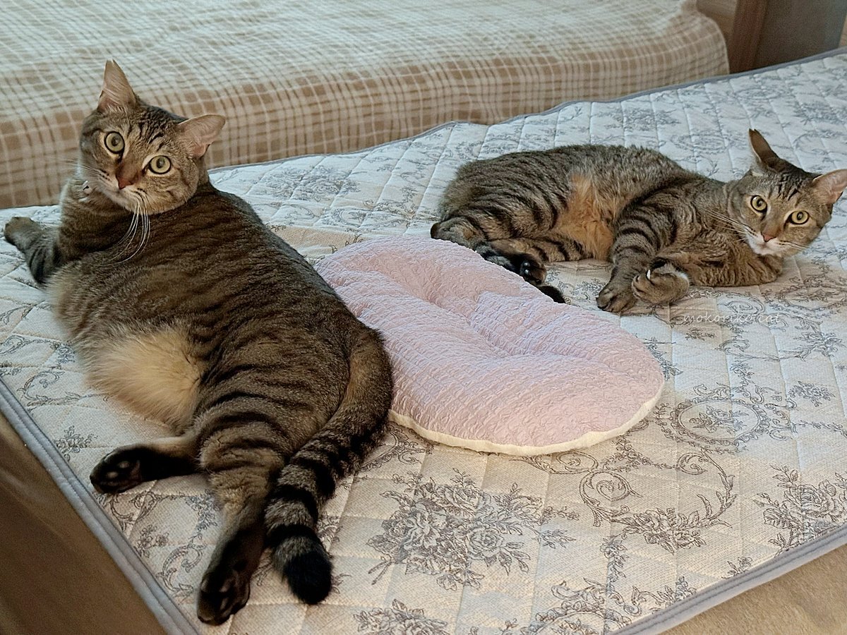 親子みたい🥰ガックンはカラーもストレスになるとのことで外しました。お薬もらって様子見です😥 #猫のいる暮らし #猫好きさんと繫がりたい𓏲𓎨 #キジトラ #サバトラ pic.x.com/OFd0H3PjF8