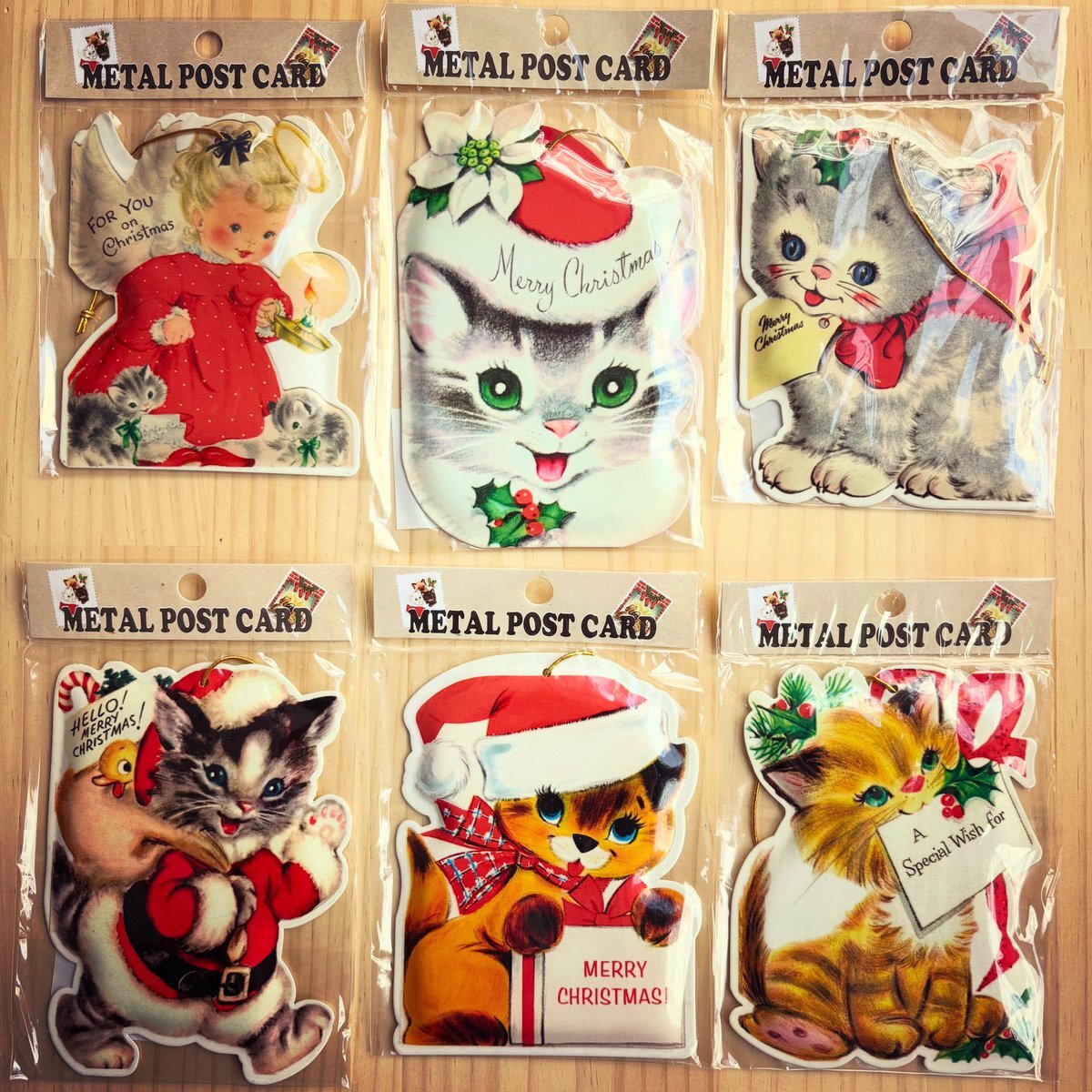 レトロなイラストがかわいいダイカットのポストカード。 カードだけどメタル製です。 イラストは全部で6種類。 宛名面に切手を貼ればそのままポストから送ることができます(定形外郵便)。 (続く) #三毛猫雑貨店 #猫雑貨 pic.x.com/K0YtCFbLW1