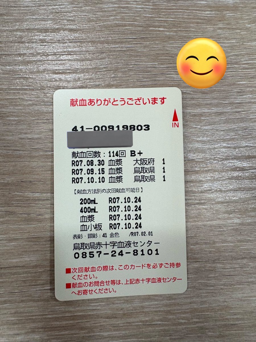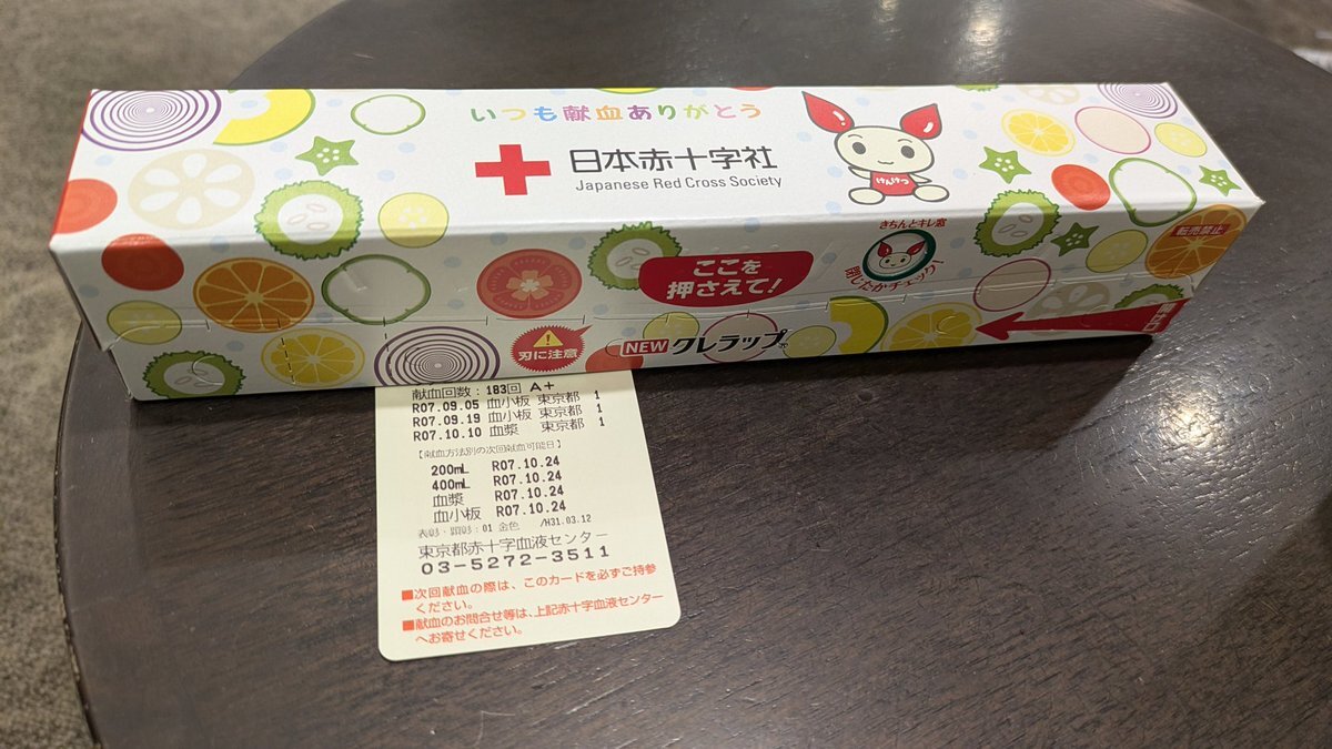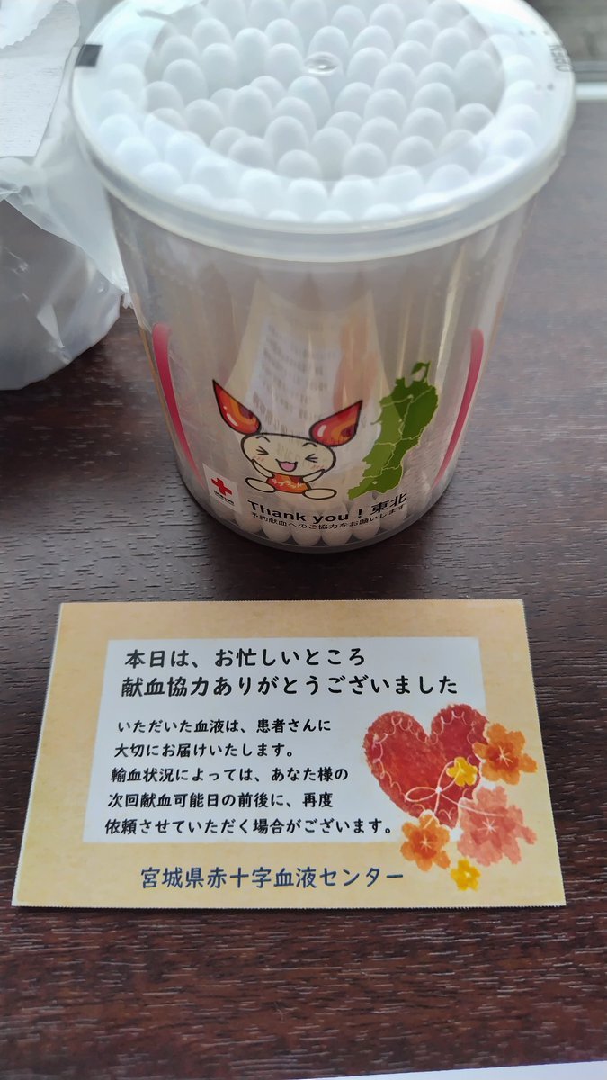 献血すると色々貰えます。ポイント貯めてもらえる物もあったりします。 あと、赤十字血液センターから直接献血依頼の電話来てそれを受けて献血すると、数百人から数万人に1人の「選ばれし者」の称号を貰えるとか貰えないとか…。この前初めて「選ばれし者」になれた✌ #献血 #献血ルーム pic.x.com/J4B1rbyr1R