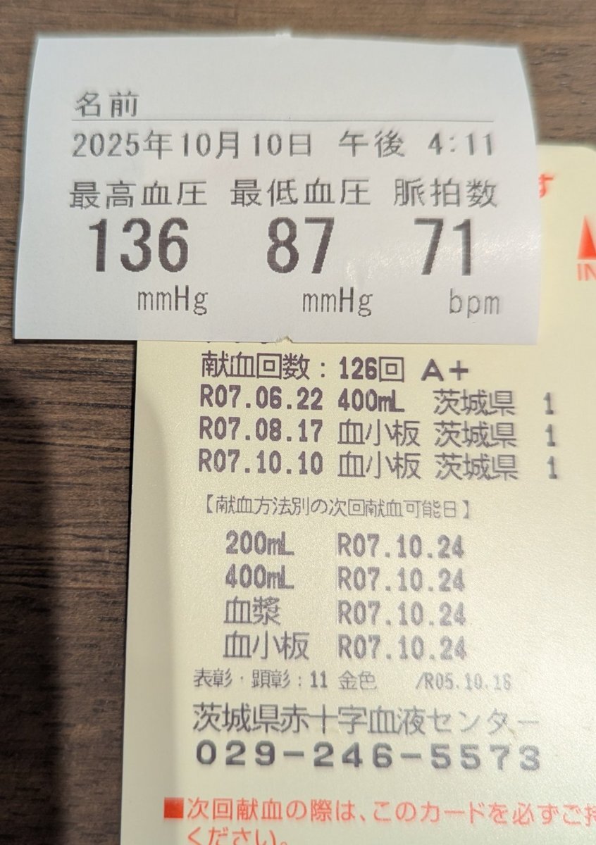 本日は #献血ルームMEET 、(水戸駅南ビルの献血ルーム)で126回目の #献血 に協力してきました!これから寒くなって冬場になると #献血 協力者が減るという話を聞きました。献血は常に必要ですので、皆様のご協力をお願いしたします🙇🙇♂️🙇♀️ pic.x.com/X6obwW0Vkq