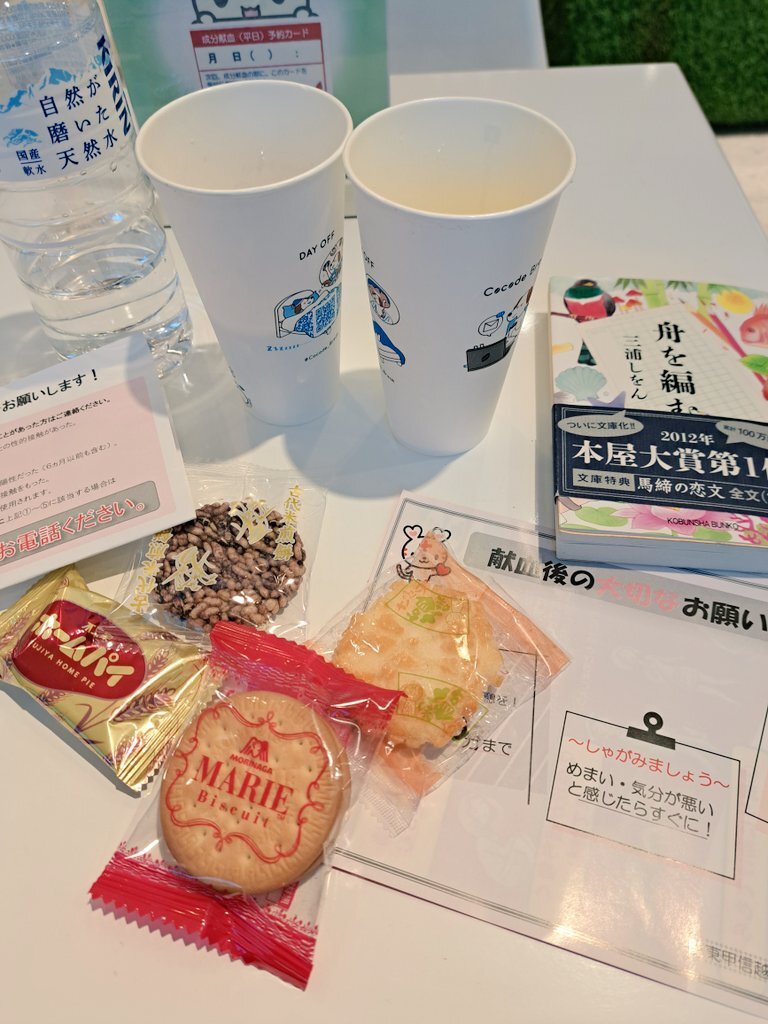 行こうと思うと偏頭痛で服薬しちゃったり夏の足の怪我があったりでキャンセルが続いてしばらく控えていた献血 ようやく来ることが出来た 久しぶりに来たらおやつのラインナップが変わってて新鮮 取り柄の無い私でも血液を褒めてくれるので献血て好き🩸 #津田沼献血ルーム #献血 pic.x.com/AuVXHwQGzM