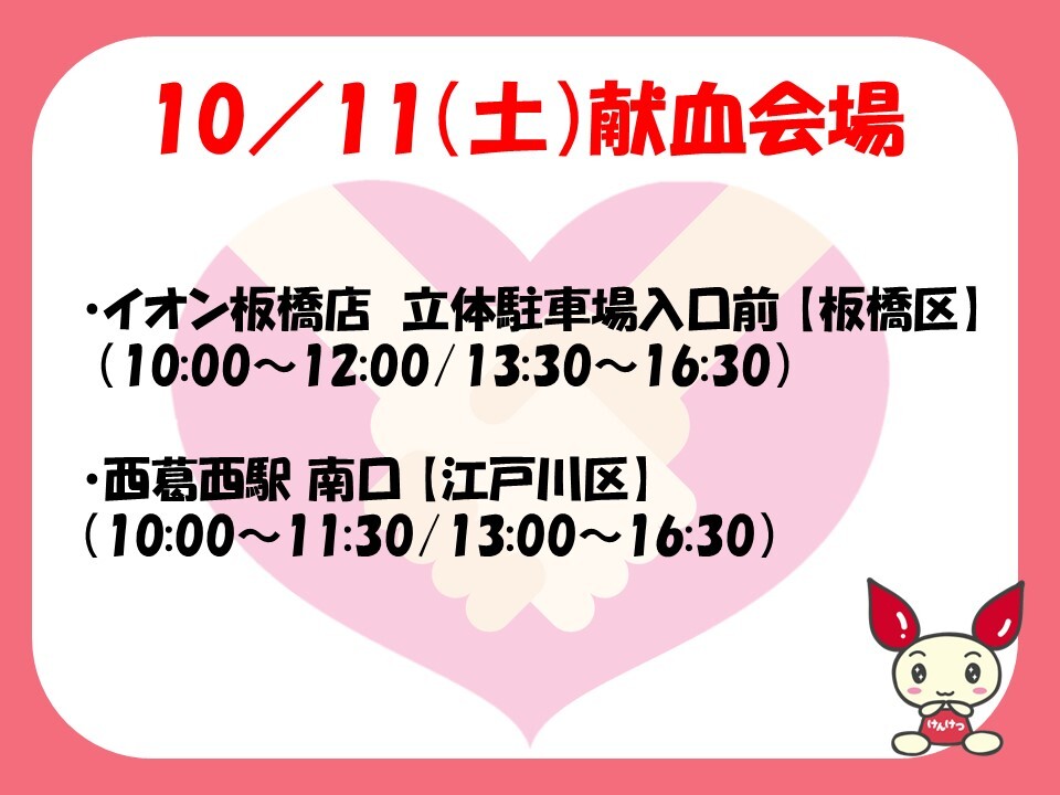 ✨献血会場のお知らせ✨ 明日は #イオン板橋 #西葛西駅 にて献血実施予定です🙌 ラブラッドでのご予約は三時間前まで可能です🙆 皆様のご協力をお待ちしております!!! bs.jrc.or.jp/ktks/tokyo/pla… #献血 #板橋区 #江戸川区 pic.x.com/MCwStMFwAh