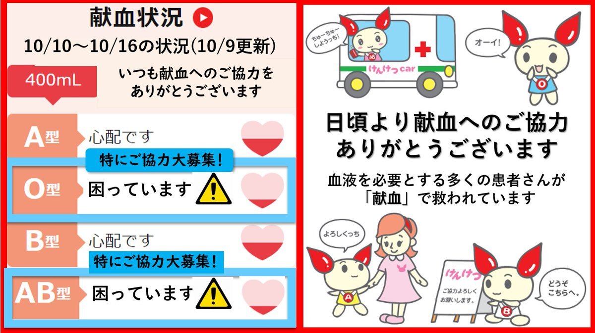 📢特に #O型、#AB型、#400mL 献血のご協力が必要です。 #A型、#B型、#成分献血 も大歓迎です<関東甲信越> いつも多くの献血のご協力、誠にありがとうございます💕引き続き継続した献血のご協力をお願いいたします😊 献血ルーム🏠 bs.jrc.or.jp/ktks/bbc/m0_03… 献血バス🚌 bs.jrc.or.jp/ktks/bbc/block…