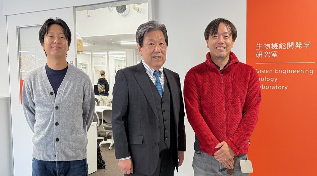 今春、相模原キャンパスに獣医学部グリーン環境創成科学科が開設されました。生物機能開発学研究室の得津隆太郎先生は、獣医学部で一番若い教授です。藻類に関する先駆的な研究を展開されています。研究内容などを、丁寧に説明していただきました。助教の八木宏樹先生と共に、ご活躍が期待されます。