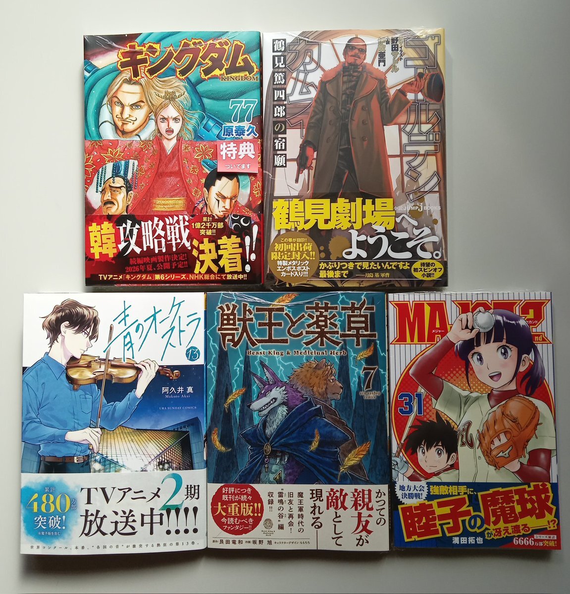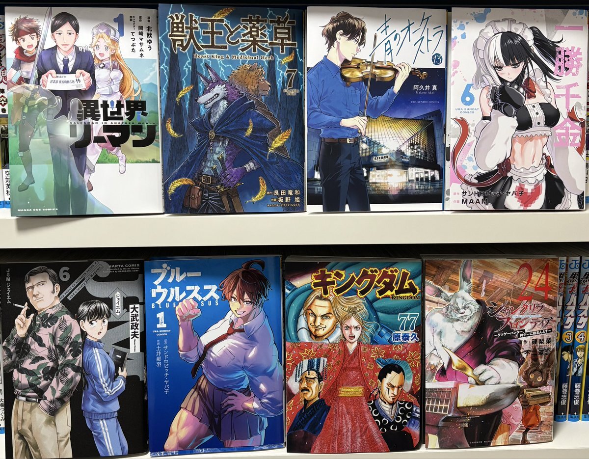 2025年10月に購入したマンガ 獣王と薬草7巻 青のオーケストラ13巻 一勝千金6巻 異世界リーマン1巻 JM6巻 ブルーウルスス1巻 キングダム77巻 シャングリラフロンティア24巻 特に獣王と薬草がお気に入り🦁 #獣王と薬草 pic.x.com/mHWl9fWHeL