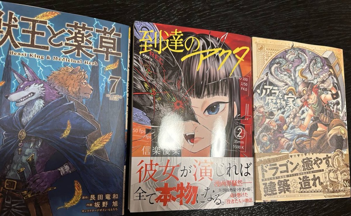 イチオシの漫画がまさかの3巻同時発売してたので買ってきたぁああああああ 獣王と薬草 嫉妬するほど面白い・・新キャラ謎に親近感がある・・・ 到達のアクタ 相変わらず激アツ ソアラと魔物の家 クラフトファンタジーおもしろい