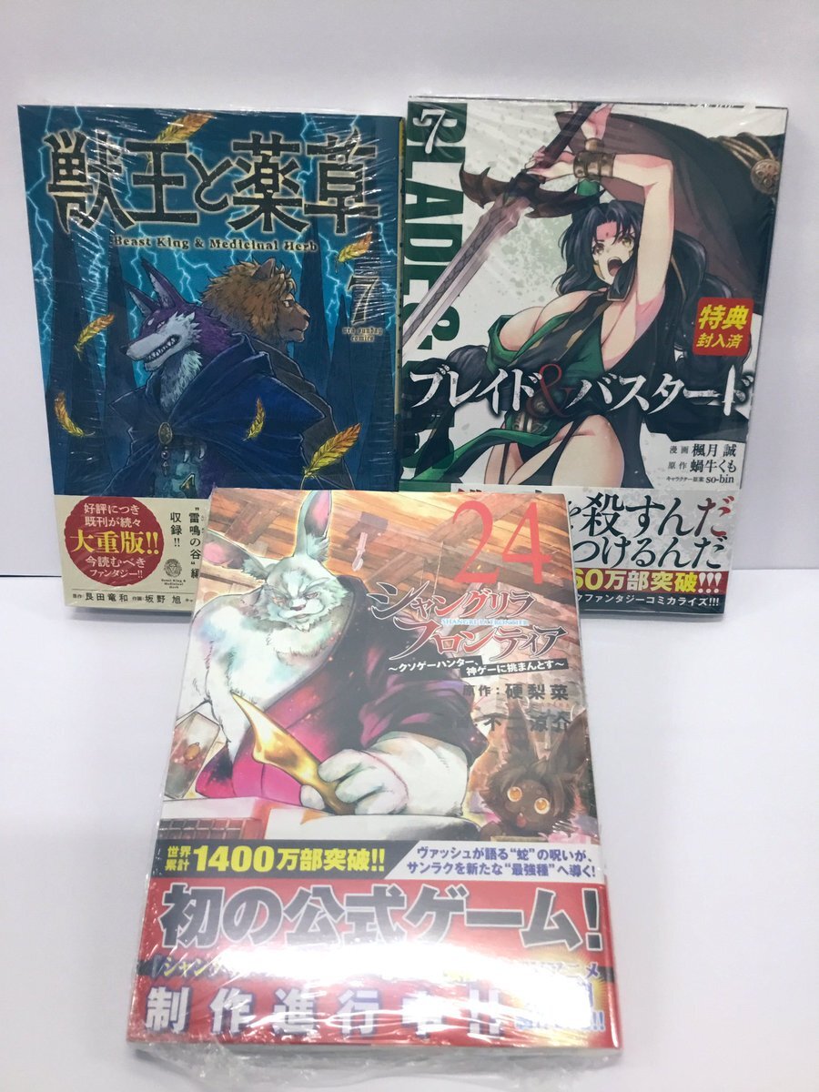 【新刊情報】 / 本日入荷のオススメ異世界コミック #ブレイドアンドバスタード 7巻 #シャングリラフロンティア 24巻 ⬆️特装版も同時発売😆 #獣王と薬草 7巻 \ #ドリコム #講談社 #小学館 pic.x.com/NP3ZuY6yjv