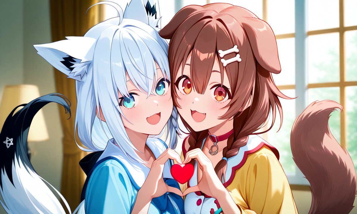 みなさん、こんにちは(՞ ܸ. .ܸ՞) 2人でハート♡♡ 戌神ころねと白上フブキ #AIイラスト #獣耳娘 #AIイラスト大好きと繋がりたい #白上フブキ #戌神ころね #ホロライブ #AIイラスト絵師さん・術師さんと繋がりたい pic.x.com/zl7hQI9MJQ