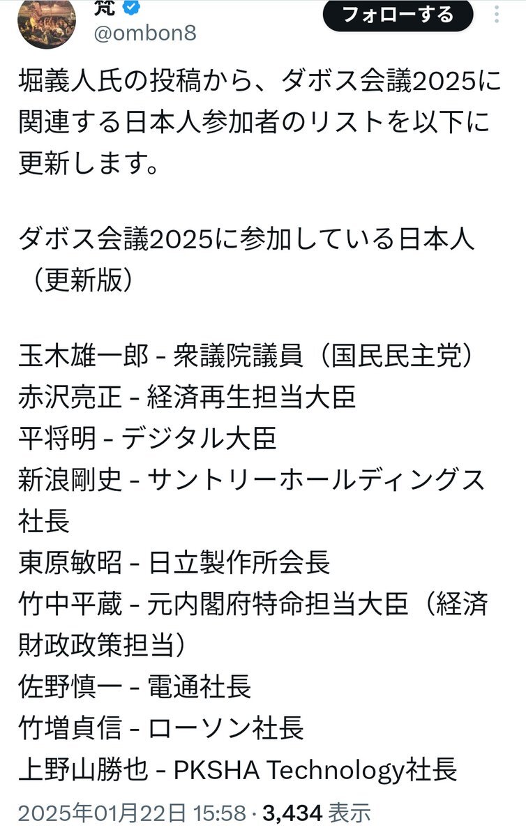 返信先:@t2PrW6hArJWQR5S東京財団(日本財団)出身の 玉木雄一郎が 元東京財団理事長の竹中平蔵ら 日本代表として ダボス会議に出席している 玉木雄一郎は日本財団通じて 中国共産党と繋がり原発推進改憲 #ヤバすぎる緊急事態条項 #ヤバすぎる緊急政令 #国民民主党に騙されるな #玉木雄一郎は統一教会 x.com/empathyjojo/st… pic.x.com/IFtMbvHTYH