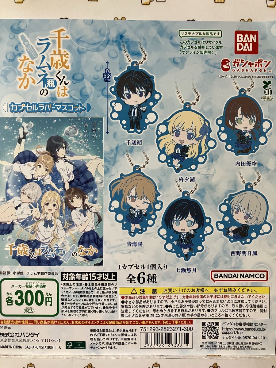 【入荷情報】#ガシャポンのデパート #王子サンスクエア TVアニメ『 #千歳くんはラムネ瓶のなか 』カプセルラバーマスコット K-08 #ちびまる子ちゃん ミニゆのみ L-13 #くずみちゃん ぬいぐるみへアクリップ M-15 本日の新商品入荷情報です(*゚∀゚*) 皆様のご来店をお待ちしてます╰(*´︶`*)╯ pic.x.com/qm8M068oUy