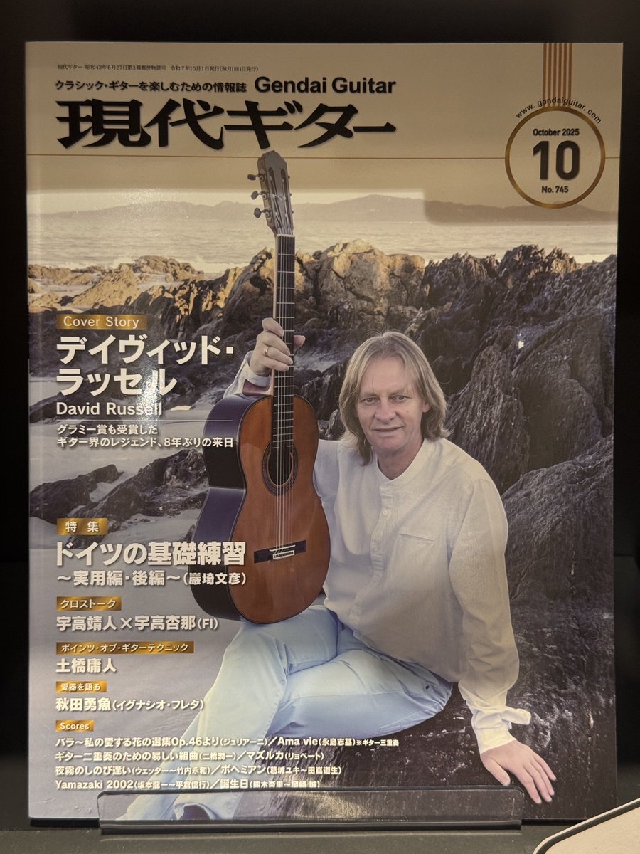 \✨クラシックギター好き注目の雑誌!✨/ 「現代ギター」の最新号が 入荷いたしました! 今回の表紙は、グラミー賞も受賞した ギタリストの巨匠デイヴイッド・ラッセル氏 #DavidRussell #PR #現代ギター pic.x.com/vyKa1dnjk7