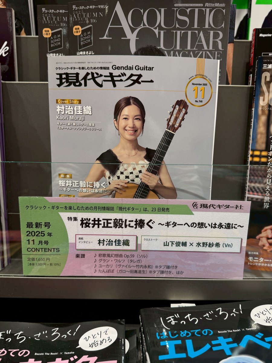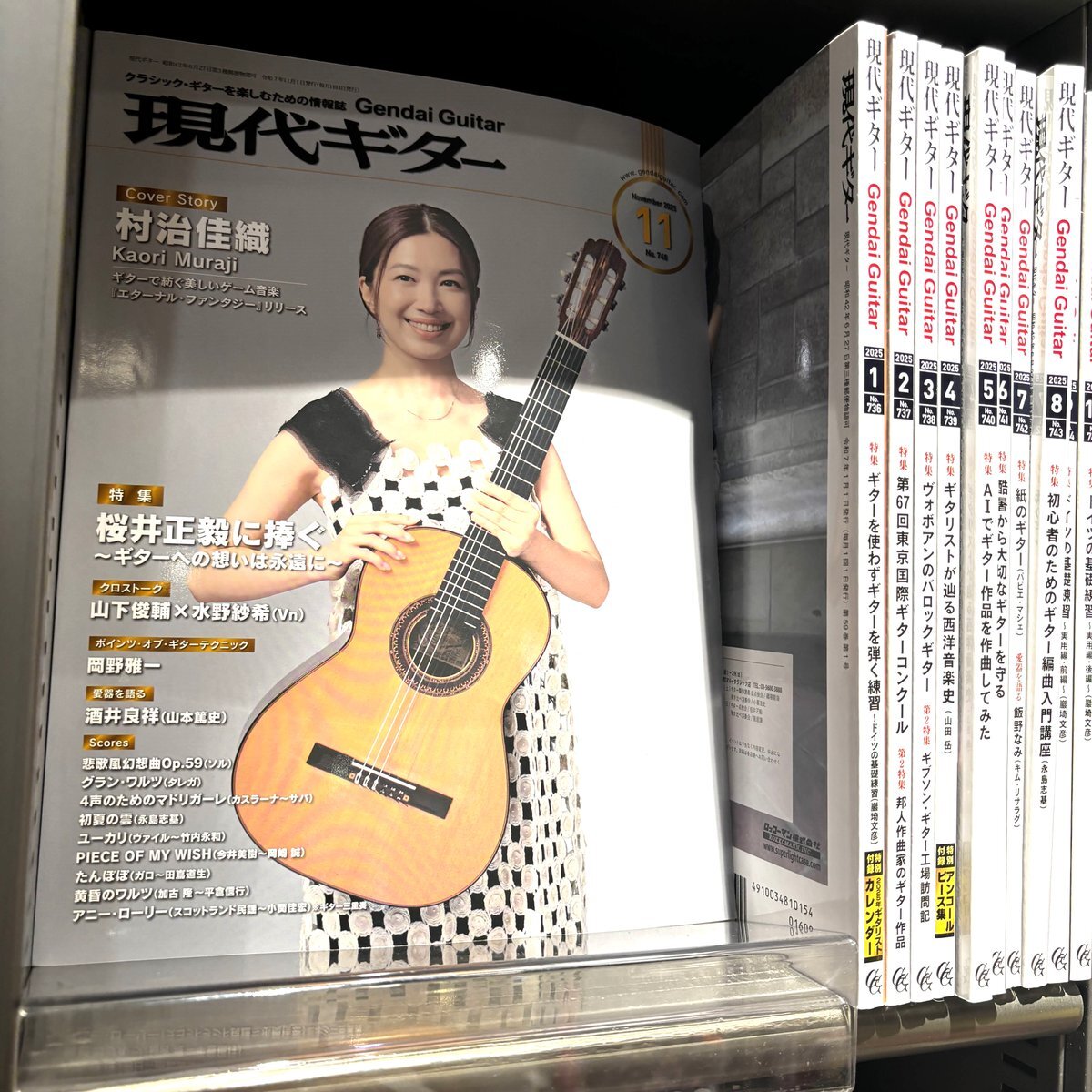 #現代ギター 11月号が入荷しました🍁 表紙は、7年ぶりのニューアルバム「エターナル・ファンタジー」をリリースした #村治佳織 さん☺️ また、当店でも大変お世話になりました #桜井正毅 さんの特集も掲載されています。必見です! 現代ギターはバックナンバーも取り扱っております♪ #島村楽器 #PR pic.x.com/kLWTt7wdwi