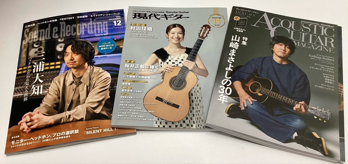 【月刊誌】入荷してます👍 ・ #サンレコ 12月号 インタビュー #三浦大知#現代ギター 11月号 インタビュー #村治佳織 特集 #桜井正毅 に捧ぐ ・ #アコースティックギターマガジン 特集 #山崎まさよし ご来店お待ちしております😆 pic.x.com/eWOX0KLNuM