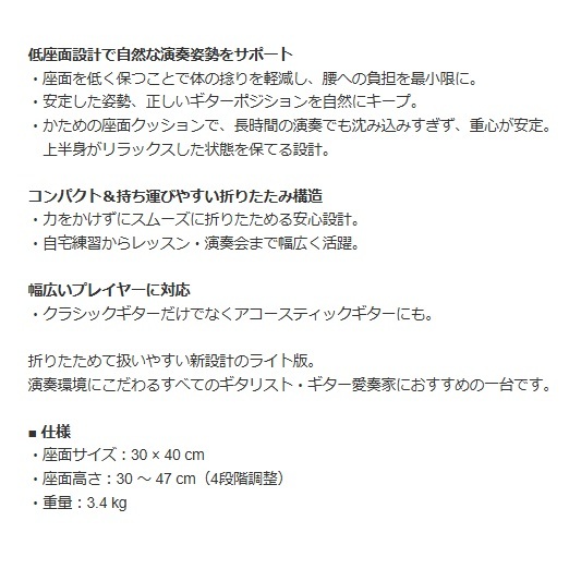#現代ギター よりありそうでなかった"ギター演奏に特化した椅子" GGS-LIGHT が明日より発売です! 1)膝の角度が90度になりギター保持力Up! 2)やや硬めの座面で安定感マシマシ+疲れにくい! 3)折り畳みも出来ます! ギターコーナーに展示中ですので是非お試しを! #演奏用椅子 #折りたたみ椅子 pic.x.com/zL0xweRwix