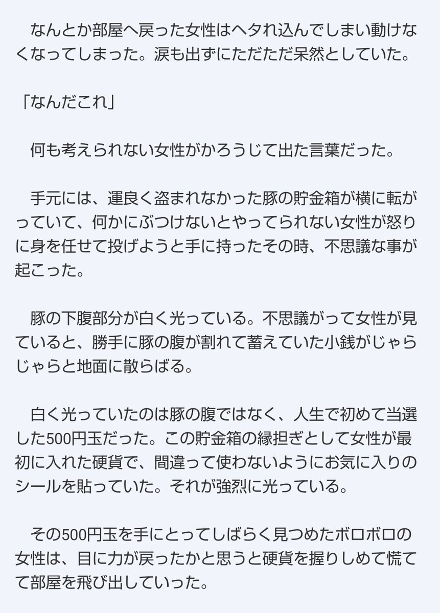 ランダムお題で毎日作る物語〜第3回目〜 (加筆修正・再掲) お題:『豚の貯金箱』 タイトル:『未来は豚のお腹から』 #短編小説 #毎日投稿 #小説が読めるハッシュタグ #現代ファンタジー #豚の貯金箱 #宝くじ pic.x.com/0pgkat9zeQ
