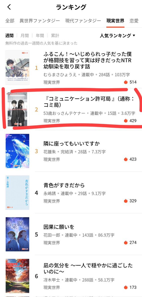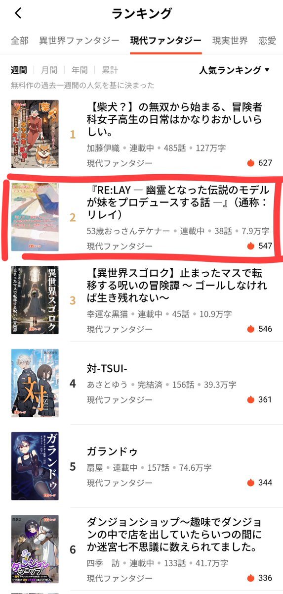 ネオページ・ジャンル別週間ランキングにて 『RE:LAY』と『コミュニケーション許可局』が揃って2位にランクインしました。 応援ありがとうございます🙇‍♂️ これからも、物語の“その先”を裏切らないよう、丁寧に積み上げていきます。     #小説 #ネオページ #現代ファンタジー #現実世界 pic.x.com/eKvrKNBgjP