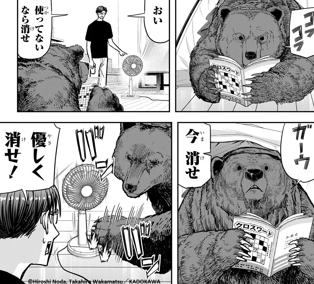 / 📌『#くまぐらし』本日更新日🆙 📣42話のおすすめシーンをチラ見せッ👀 \ 扇風機、壊れちゃうバル。 #同棲 #ルール #理想と現実 #熊 #くま #クマ #この熊は人を襲わないよ 最新話はピッコマで!✅ ➡️ piccoma.com/web/redir_link… 最新単行本3巻、絶賛発売中✨ ➡️ kadokawa.co.jp/product/322505… pic.x.com/eRazOrn1v6