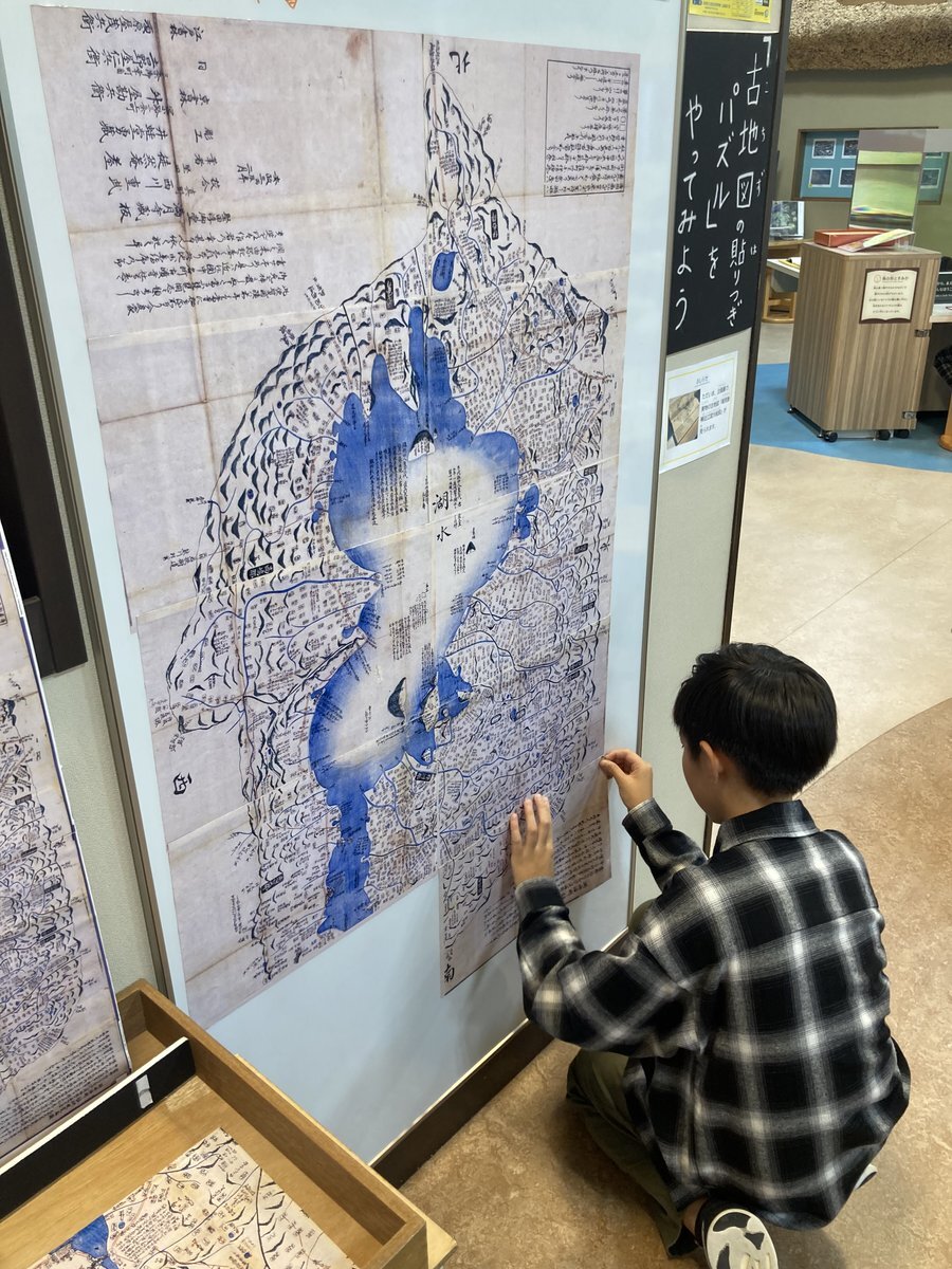 企画展示「川を描く、川をつくる」で展示中の江戸時代の古地図「近江国大絵図」がパズルになりました。11月24日(月・祝)までディスカバリールームで楽しんでいただけます。紙を10枚はり合わせ大きな地図に仕立てます。土日祝は混雑が予想されますので平日の来室がおすすめです。 #琵琶湖博物館 #びわ博 pic.x.com/BHkv10nllF