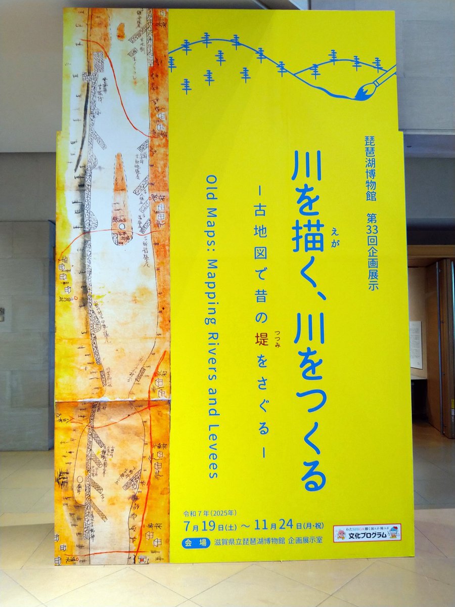 滋賀県立琵琶湖博物館の「川を描く、川をつくるー古地図で昔の堤をさぐるー」展を観てきました。 琵琶博では比較的珍しい文書中心の展示でした。堤防作りの為の民具や現地調査の方法や道具なども紹介されており、なかなか面白かったですかったです。 #博物館に行く #草津 #琵琶湖博物館 pic.x.com/VEj03iBFFW