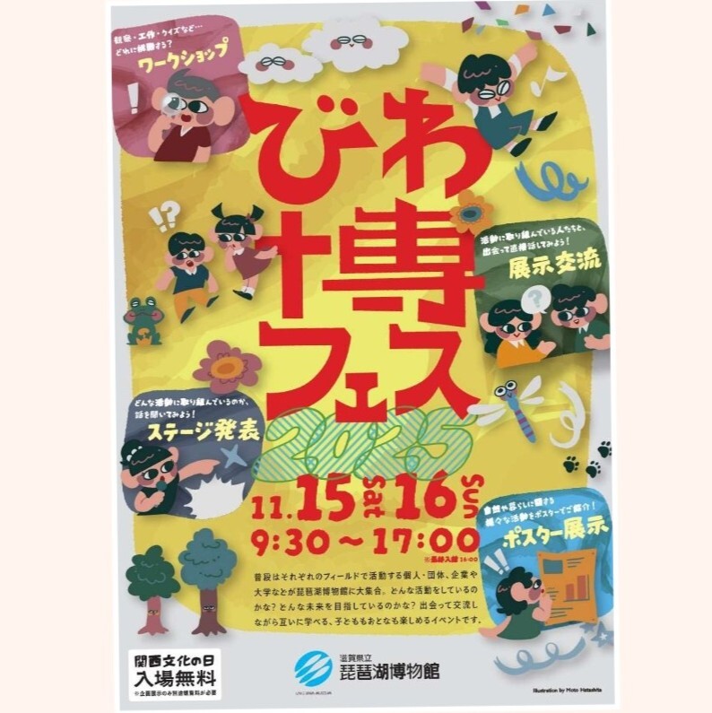 びわ博フェス二日目も元気に開催中です!昨日は多くの方にご来館いただき、非常に賑やかでした! 今日も様々なワークショップが実施されています!ぜひご来館いただき、いろんな方々と交流し、楽しんでください! 詳細はこちら biwahaku.jp/festival/2025.… #琵琶湖博物館 #びわ博 pic.x.com/M1brxGXXu7