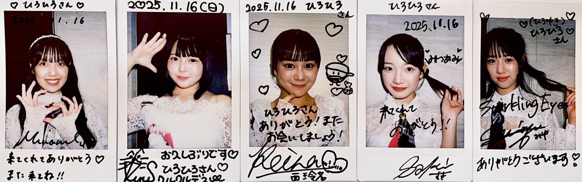 2025.11.2 秋の夢物語ライブ OSC湘南シティ チェキ会終わりに 残り5分でもう一度、無料集合撮影会 何故か、界隈のヲタさんも居なくなってて 一般客入れて5名くらいしか居なかったので 少し手が混んだポーズを🙇‍♂️ #SparklingEyes #スパアイ #西玲名 #クルクル #菅原咲来 #美南里歩 #瑞生みゆ pic.x.com/ViDxiXVO9Z