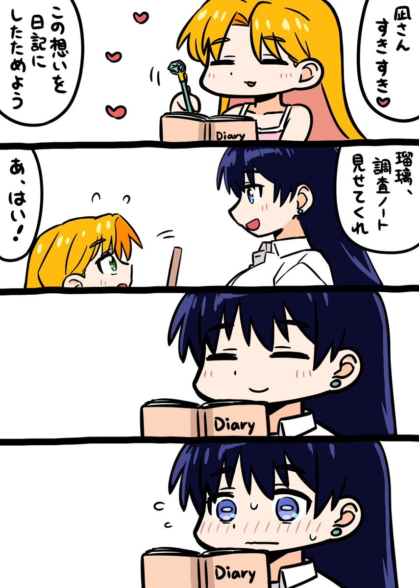 おはようございますでゲソ!('ω')ノ 人懐っこい瑠璃ちゃんに ハグされて恥ずかしがる まひろちゃんで、 ドキドキお目覚めっ💞 今日は、障害者就労事業所の 祝日出勤へ行く予定です(^^♪ #瑠璃の宝石 #おにまいお絵描き pic.x.com/yG89ZYGPC5