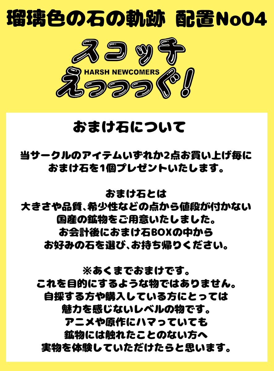 瑠璃の宝石オンリー「瑠璃色の石の軌跡」サークル参加確定しました! スコッチえっっっぐ!の配置はNo.04になります。 お品書きは画像を参照ください。 直前の案内になり申し訳ありません。 新作2点におまけも用意しましたので、是非お越しください! #瑠璃色の石の軌跡 pic.x.com/XS4n4Hcezv