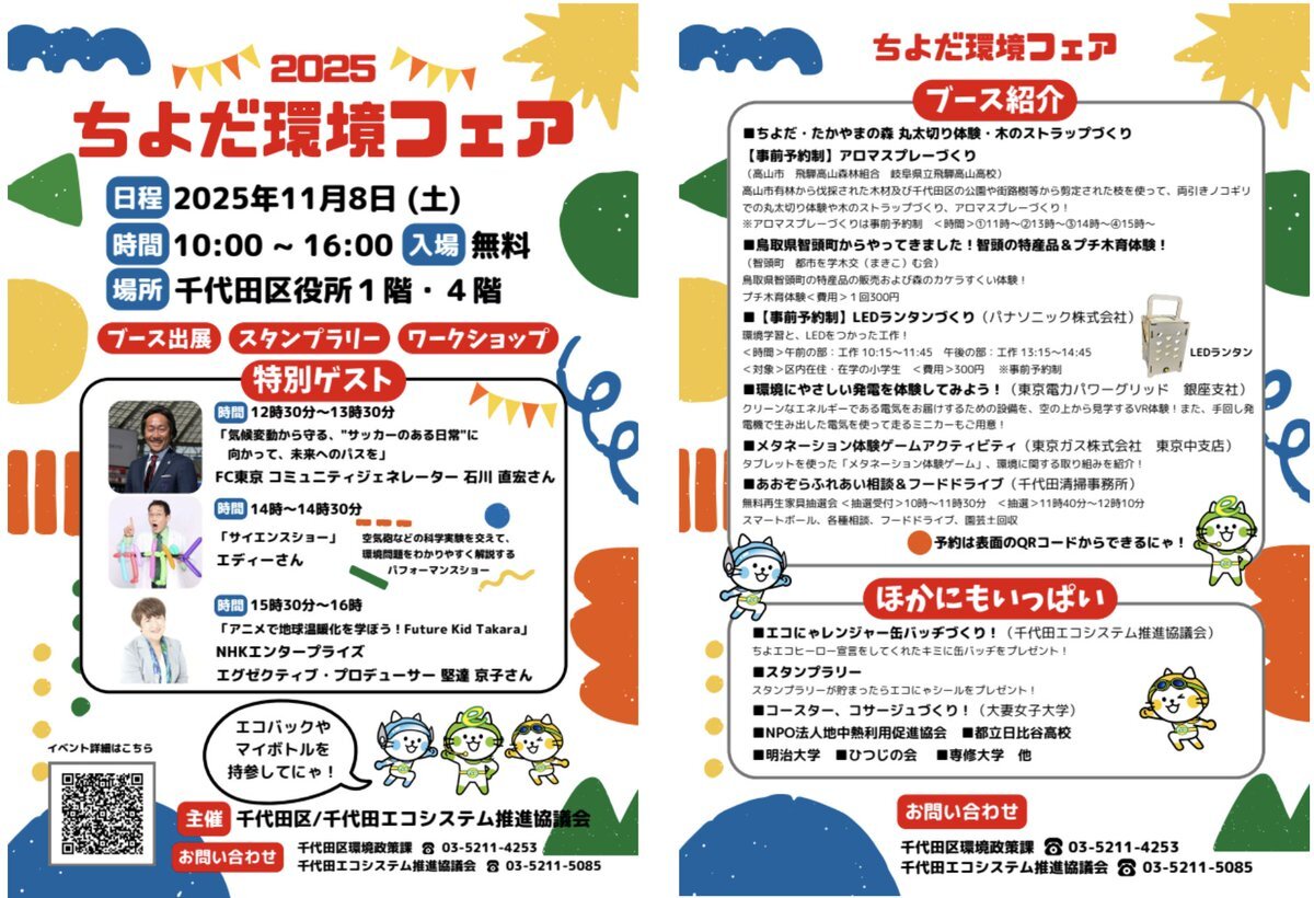 11/16(日)に茅ヶ崎市役所で「ちがさき環境フェア2025」を開催。大人から子どもまで、楽しみながら未来の暮らしと地球環境のためにできることを発見できるイベントです。ワークショップやスタンプラリーも開催!是非ご参加ください。 #環境フェア #市イベント city.chigasaki.kanagawa.jp/kankyo/kankyof… pic.x.com/EAPNfkxnYr