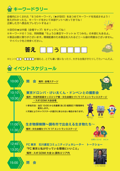 今年も「調布市環境フェア」が開催されます! 環境について考え、体験しながら楽しめる1日ですよ。 キッズゾーンにキャラクター撮影会や図書のリサイクルも♪ 日時:11/1(土)10:00〜15:00 会場:調布市役所前庭、調布市文化会館たづくり北側道路 詳細:city.chofu.lg.jp/070010/p039377… #調布市 #環境フェア pic.x.com/5UySZvf5ys