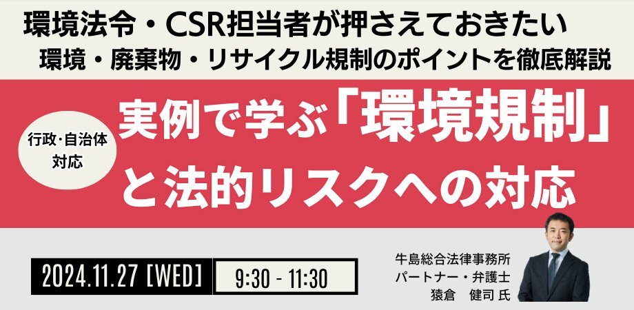 📷11月27日(水)開催 「実例で学ぶ” #環境規制 ”と法的リスクへの対応」 【講師】猿倉 健司 氏/牛島総合法律事務所 パートナー・弁護士 ------------------------- #環境 #弁護士 #廃棄物 #リサイクル #法規制 #自治体 #行政 #JPI #セミナー情報 #セミナー #セミナー開催 pic.x.com/rboWx5C9O0