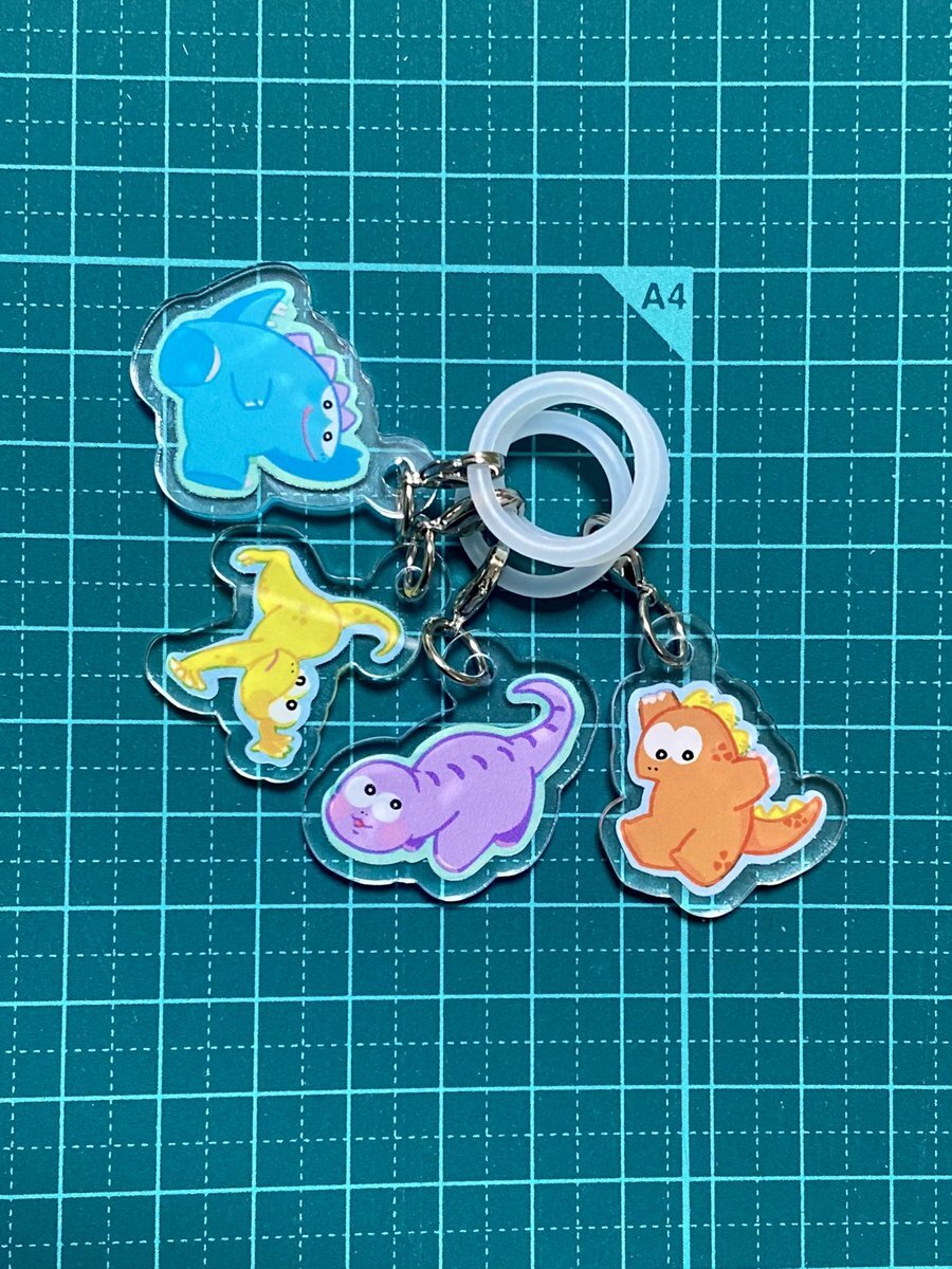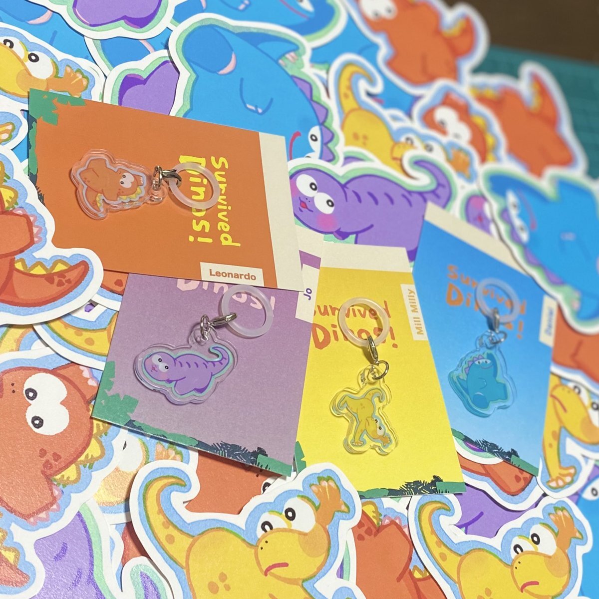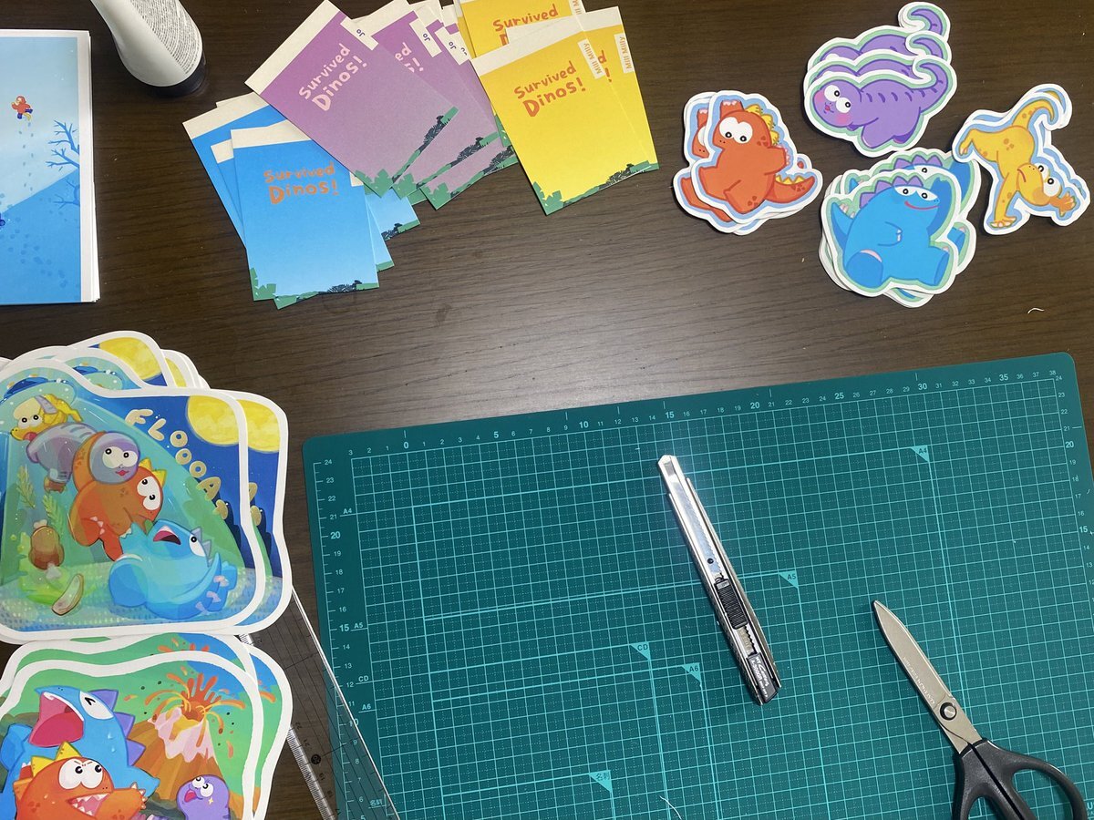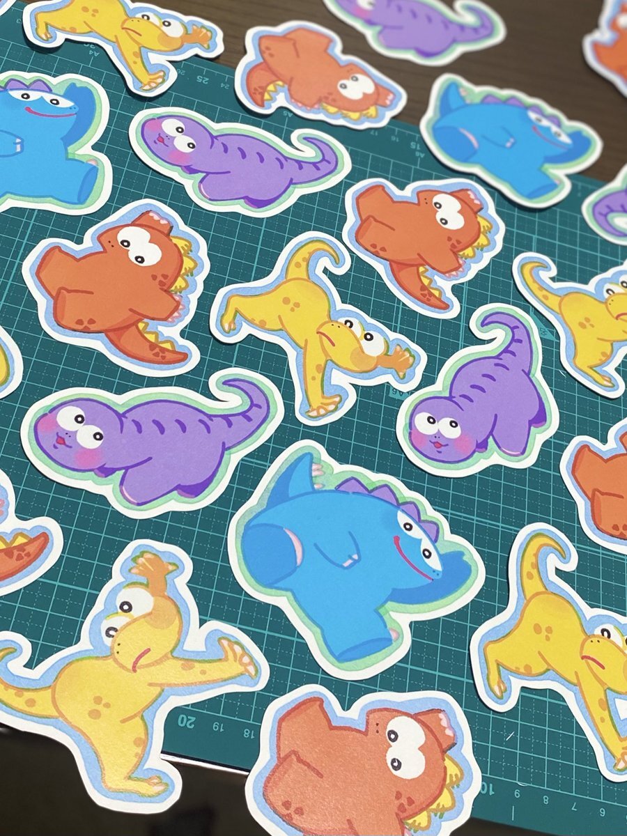 昨日の成果!! 可愛いダイナソーズの変形しおり&目印アクキーの台紙チョキチョキしました〜手いてぇ〜 変形しおり ¥100 アクキー ¥500 予定…🫠 #デザフェス62 #生き残った恐竜たち pic.x.com/PzrzKC3MjU