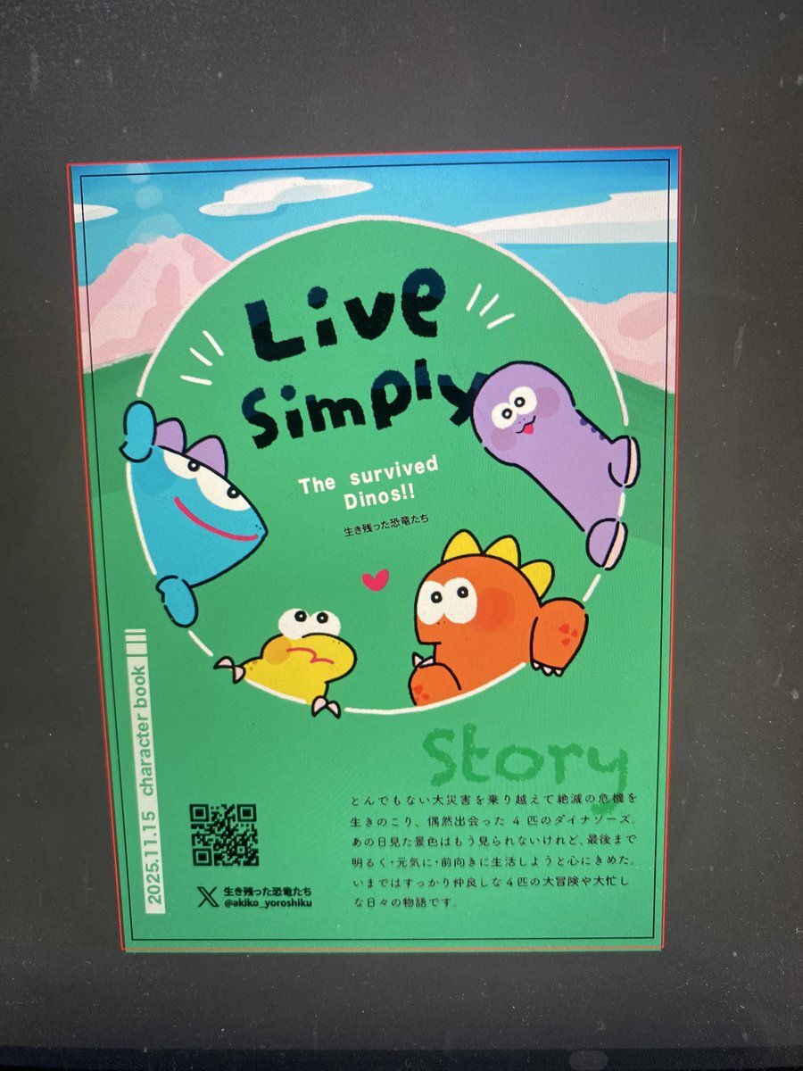 キャラクターブックの表面できた〜当日ばら撒きます! #生き残った恐竜たち #デザフェス62 #デザフェス pic.x.com/H3PqEn9zQG