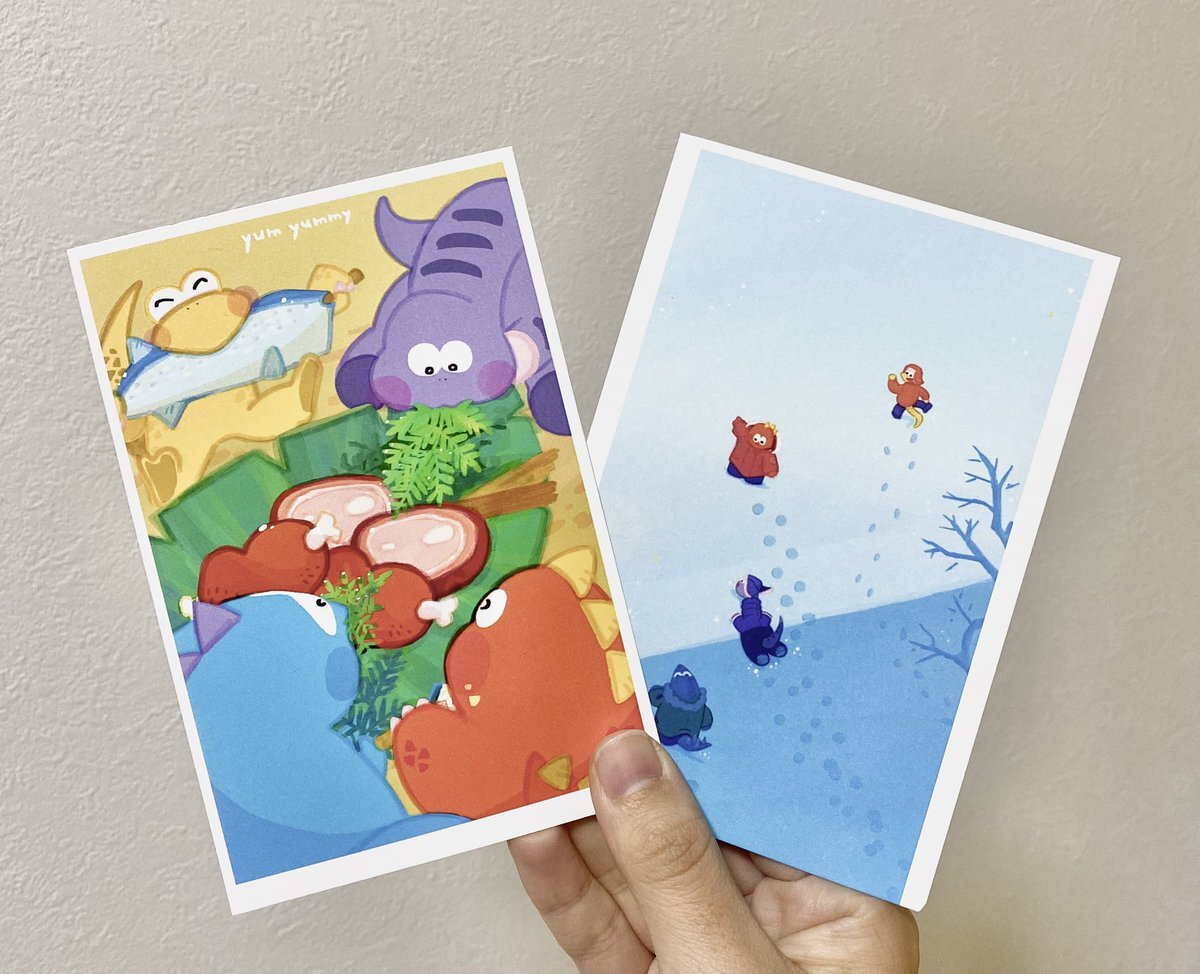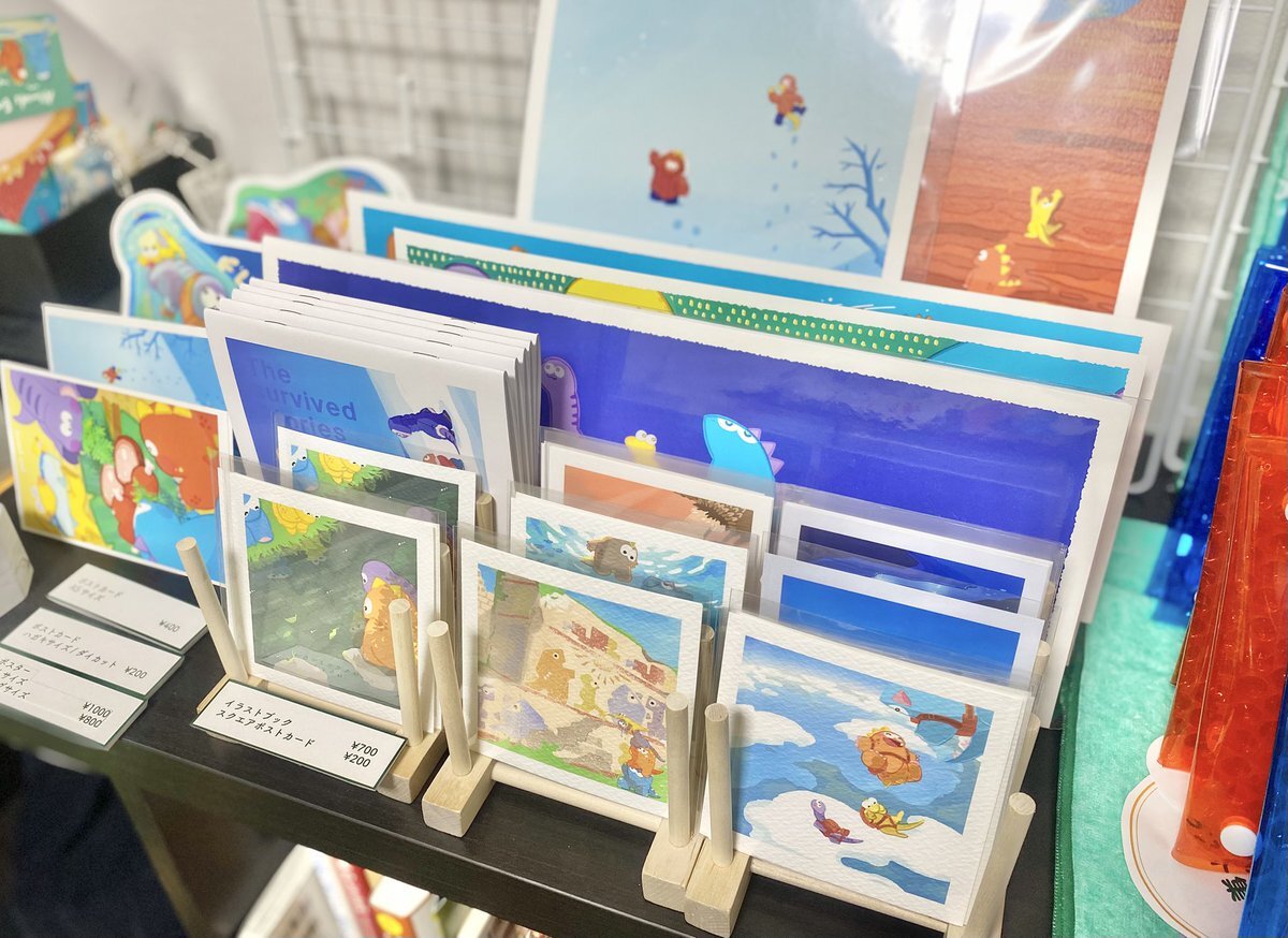 今回は紙ものもたくさんあります。人気の絵柄だった2枚を紙質違いで小部数リピートしました! 深夜の売り場検討会中〜😭 #デザフェス62 #生き残った恐竜たち pic.x.com/Ub9xKK4iNR