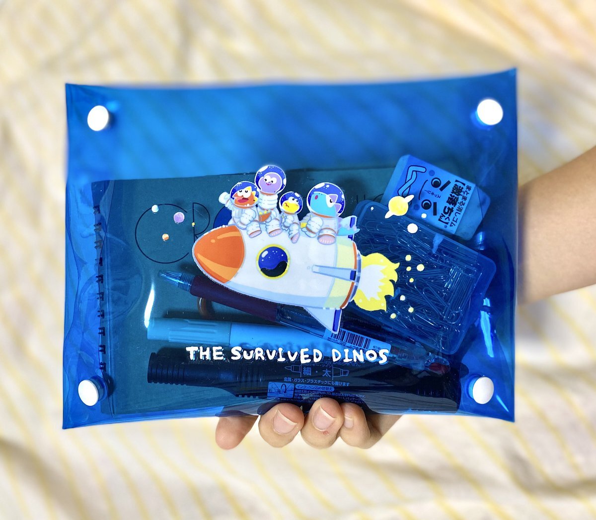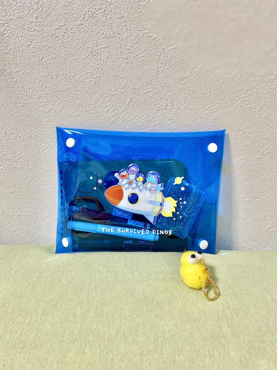 #デザフェス62 #生き残った恐竜たち A5サイズPVCポーチ! 文房具とか旅行のコード類+バッテリーなどなどちょうど良いサイズです。 同柄のA5ポストカードもちょっと作ります✨ pic.x.com/6atYP0bKCU