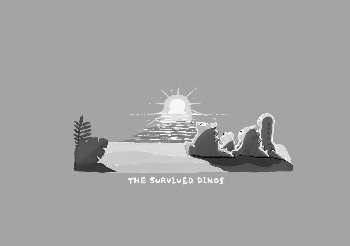 「いい絵は白黒でもいい絵」というポスト。見かけて新作2点で比較してみました。おもしろし。 こちらはPVCポーチと、A 5ポストカードになります! #デザフェス62 #生き残った恐竜たち pic.x.com/ZWOLw1fI34