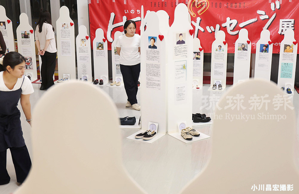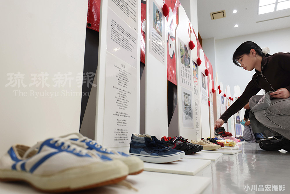 沖縄大学で靴など遺品展示「生命のメッセージ展」 ryukyushimpo.jp/news/national/… 事件や事故で命を奪われた犠牲者の靴や等身大パネルを展示する「#生命のメッセージ展」が21~23日、那覇市国場の沖縄大学で開催されます。20日、ボランティアの学生らが設営作業に参加し、丁寧に遺品の靴などを並べました。 pic.x.com/1ouoOZWdXt