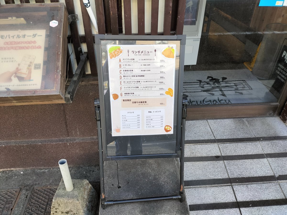 最近ランチを始めたのでしょうか? このご時世でランチがワンコイン500円は嬉しすぎる〜 #ワンコインランチ #ランチ #今日の昼食 #今日のランチ #都城市栄町の食楽 #食楽 #アジフライ定食500円 #生姜焼き定食500円 pic.x.com/qIAjpoganX