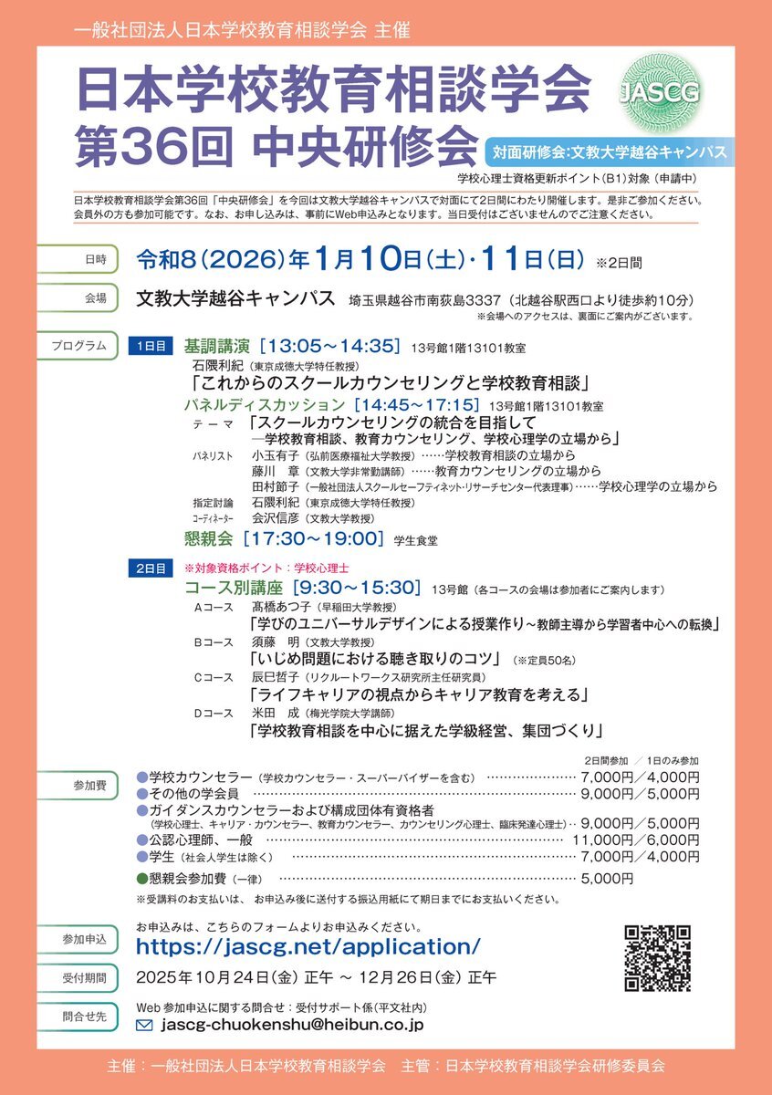 10/29に国から問行調査の結果も出ました!数値面だけにとらわれず、是非、生徒指導、教育相談、学級経営に目を向けてもらえればと思います✋学校の先生に限らず、心理職、福祉職の先生方も多く参加します。 もし、時間に都合がつけばどうですか? #生徒指導 #教育相談 #日本学校教育相談学会 pic.x.com/DrW3pino8P