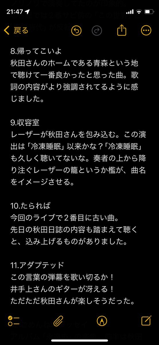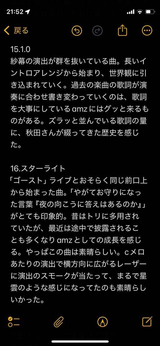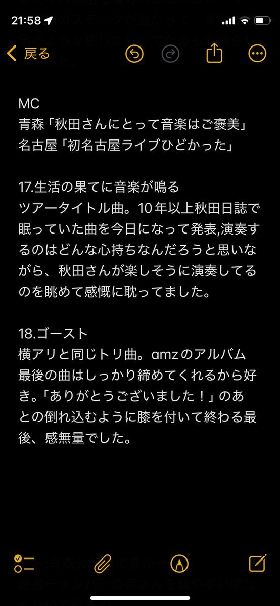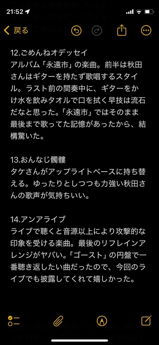 実は大阪公演の時 知人の訃報が入りました 秋田さんと境遇は似てる中でのライブツアー しっかりと一曲一曲噛み締めていました 僕はそれでも生きていて 生活の果に音楽が鳴るのだと #amazarashi #生活の果てに音楽が鳴る pic.x.com/77zEjBZnmq