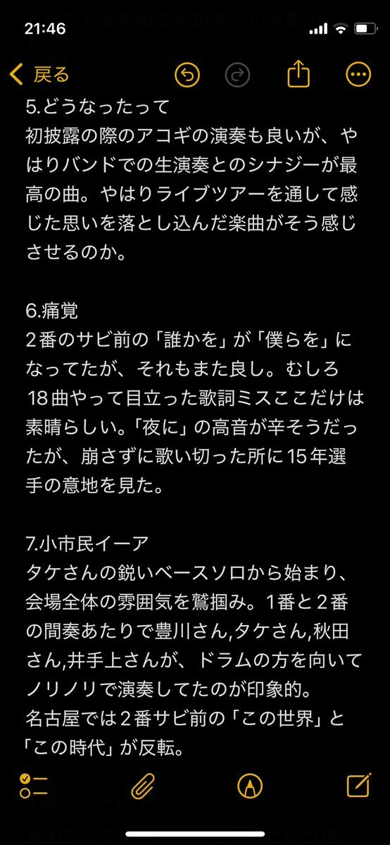 amazarashi 「生活の果てに音楽が鳴る」ツアー 感想 大したことは書いてませんが、青森公演の印象深かった所をベースに+α名古屋公演での歌詞ミスのあった部分をピックアップしてみました 最後の方は毎曲クライマックスかってくらい爆発力がありましたね #amazarashi #生活の果てに音楽が鳴る pic.x.com/jaHjb9XZad