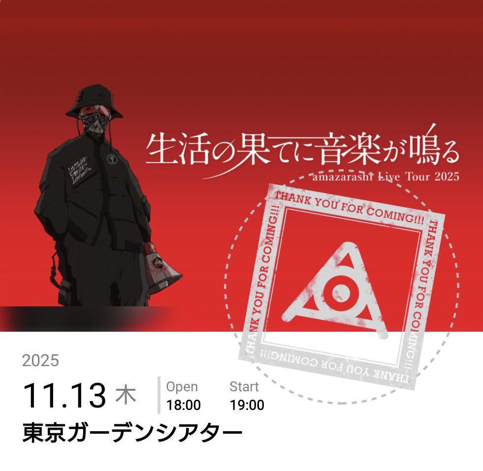余韻に浸ってたら今日になってた とにかく行けて良かった!秋田さんの声が聞けて想いが聞けて泣いてしまいました( ´^`° ) 横アリ、ガーデンシアターと今年2回行けて生きる力をたくさんもらえました! CDJ行けないけど最高のライブになることを願ってます! #amazarashi #生活の果てに音楽が鳴る