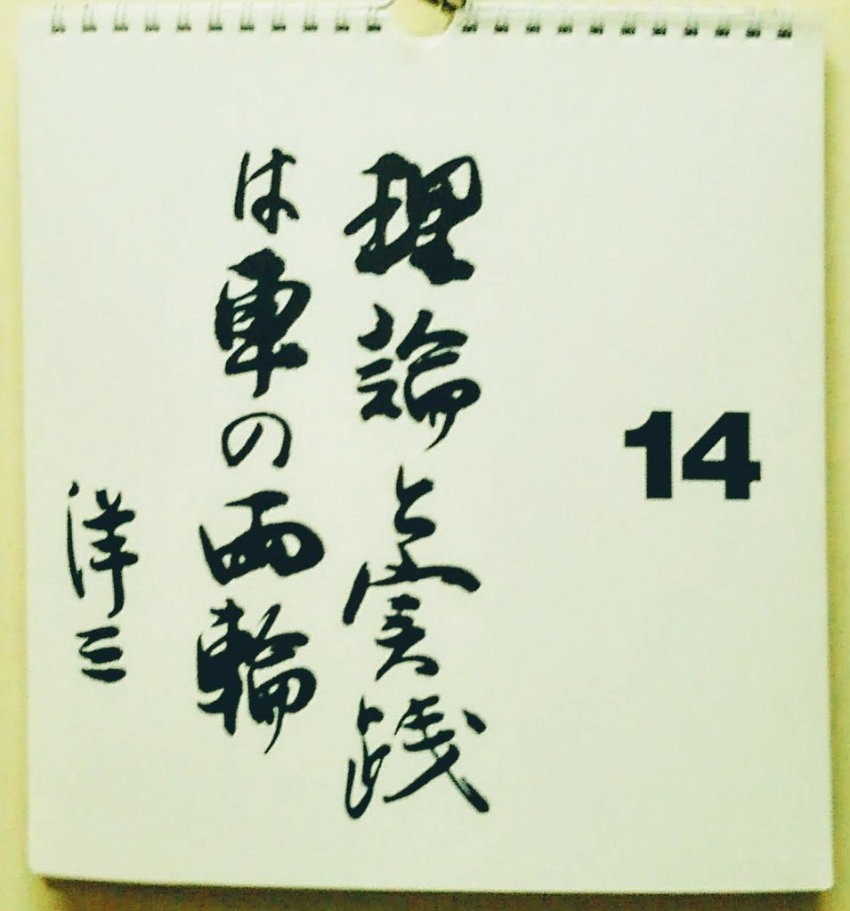 14日の #森田療法 日めくりカレンダー。 「理論と実践は車の両輪」 ( #生活の発見会 創設者長谷川洋三先生) 片方だと堂々巡り 両輪なら前進可能  #理論 #実践 #車の両輪 pic.x.com/kSeSC23Bfw