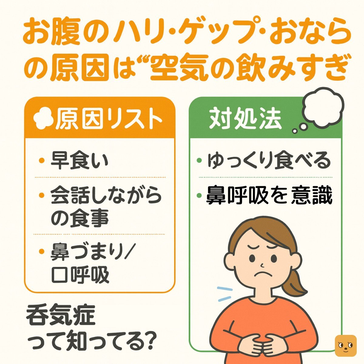 「お腹が張る」「ゲップが多い」人、多くない?💭 実は“空気の飲みすぎ”が原因かも。 ☑ 早食いしていない? ☑ 会話しながら食べてない? ☑ 鼻呼吸できてる? ゆっくり食べて、深呼吸を意識しよう🌿 詳しくはこちら👇 unlog.me/topics/know/11… #腸活 #お腹のハリ #呑気症 #生活習慣 pic.x.com/t2As6QMrzW