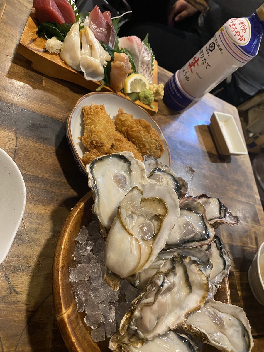 ドラゴンフライズは仙台相手に88-49で勝ちました。 祝勝会は仙台駅近くで美味しい魚をアテに美味しいお酒を飲みました。 #仙台 #こちら丸特漁業部名掛丁店 #真鯛の刺身 #黒そいの刺身 #生牡蠣 #白子 #ドラブー仙台遠征 pic.x.com/RENSAtElXx