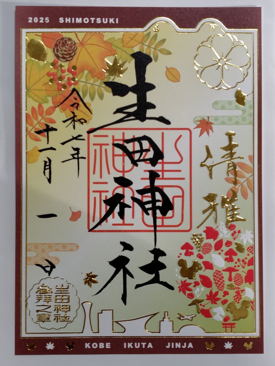 毎月の御朱印が素敵です💓 #生田神社 #御朱印 生田神社 11月の季節限定御朱印 秋から冬にかけてのデザインが登場 (Best Kobe)(Best Kobe 「神戸パラダイス」) u.lin.ee/v9LNSuU?mediad…