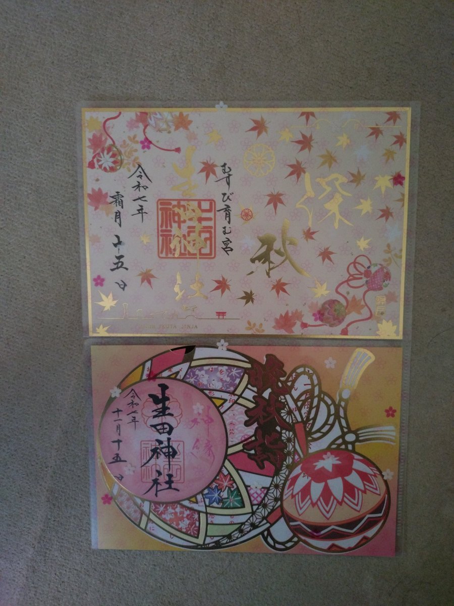 生田神社で11月限定『御朱印』の授与が始まってる。秋らしい「紅葉」の切り絵・一足早い「冬」のデザインも #三宮エリア #紅葉 #神社 #生田神社 #おでかけ kobe-journal.com/archives/89583…