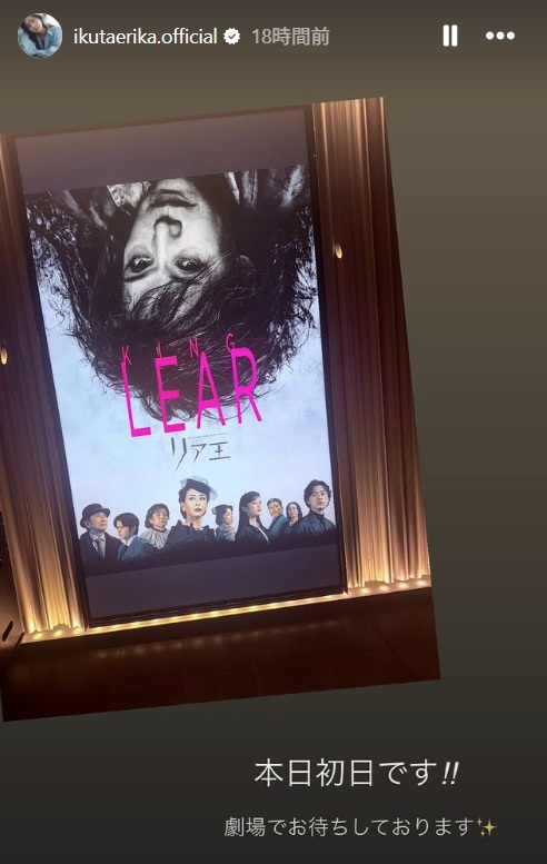 昨日はリア王無事に開幕おめでとう🎊 いくちゃんの様子からも緊張が伝わりました。ミュージカルとは違った歌なしのストレートプレイの舞台に終始圧倒されながらも所々でクスッと笑いが起きる場面や気迫迫る役者さんの演技であっという間の3時間30分でした。昨日は本当お疲れ様☺️ #リア王 #生田絵梨花 x.com/ikuta_staff/st…