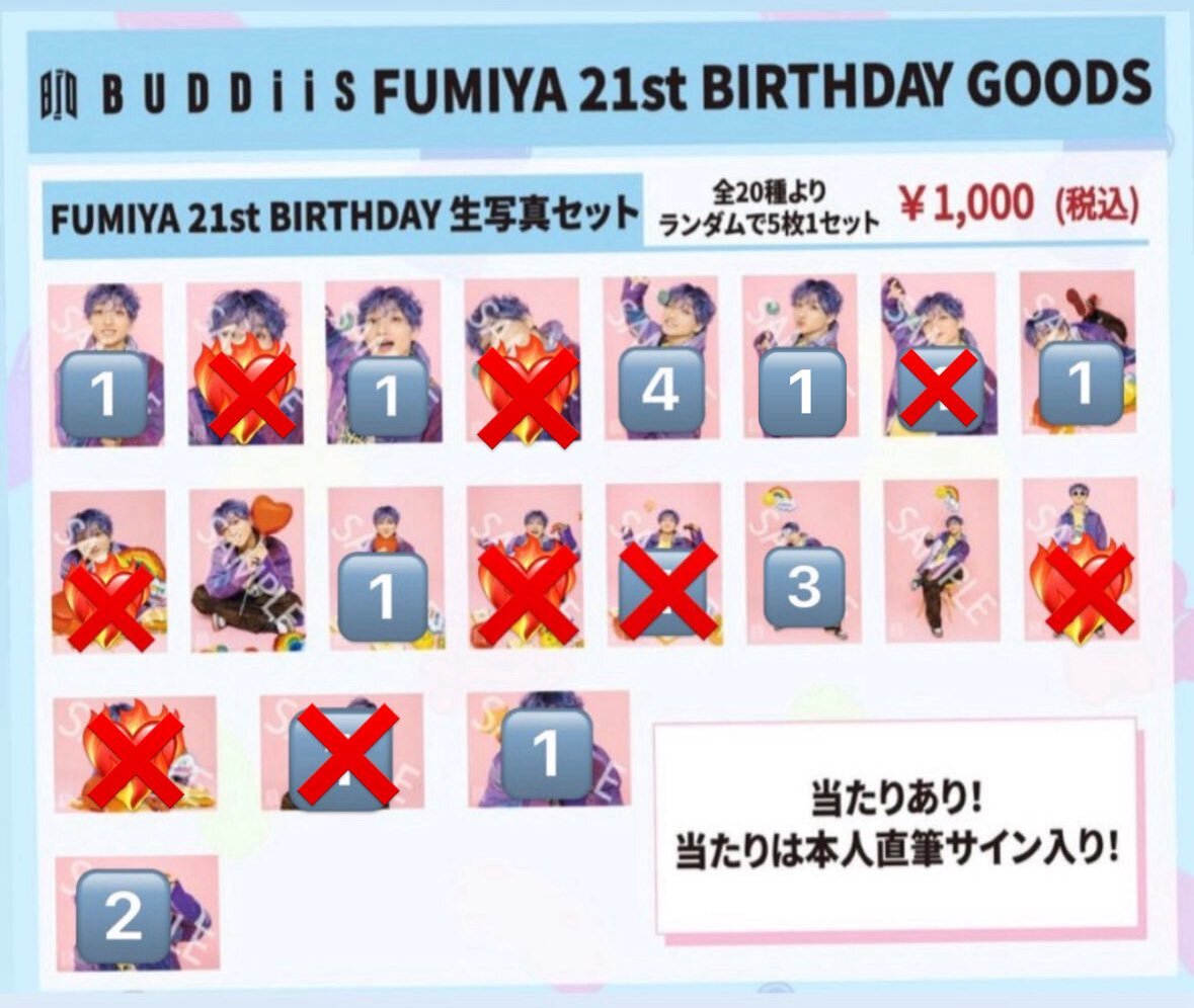 BUDDiiS FUMIYA 21st Birthday Goods 生写真 交換 譲渡 求 買取 (定価) > ❤️🔥 譲 🔢 買取の方優先させていただきます 現場ないため郵送にてお取引📮 #BUDDiiS #FUMIYA #生誕 #生写真 #BUDDiiS譲 #BUDDiiS求 #BUDDiiS交換 pic.x.com/921UDzcqFL