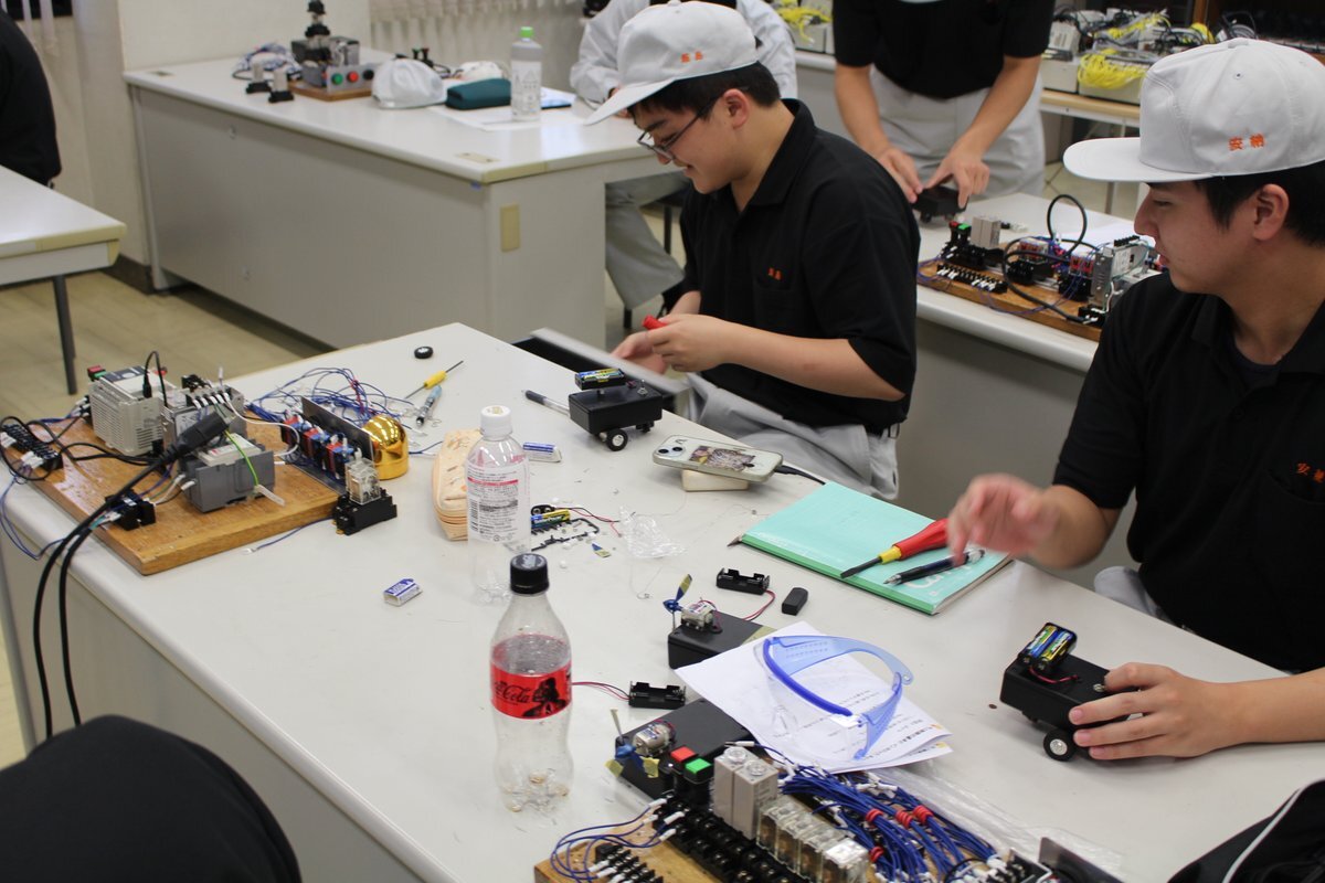 【ITエンジニア科】 ライントレースカーに挑戦!🚕 車が道に沿って1周できるよう、プログラムを工夫しました。 センサーを用いて、物の動きを管理することの面白さを感じることができました!😄 #産技校 #プログラミング pic.x.com/PxPCjaiVC4